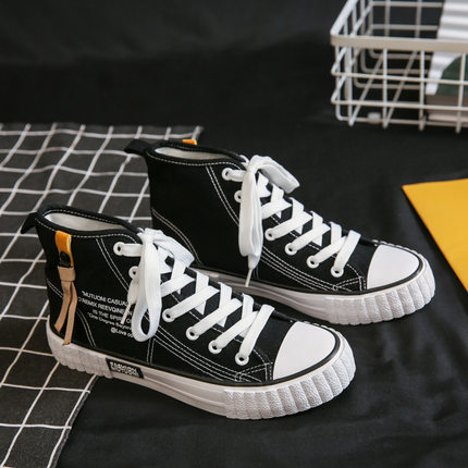 新款中帮韩版帆布鞋子圆头板鞋