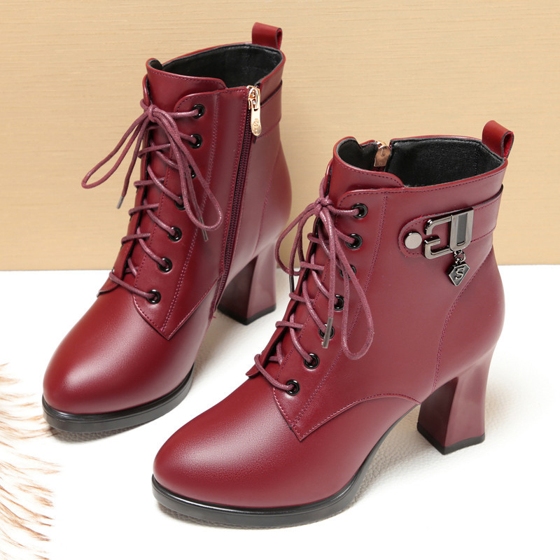 马丁靴女冬季新款舒适短靴粗跟百搭高跟不累脚防水台中年女士靴子