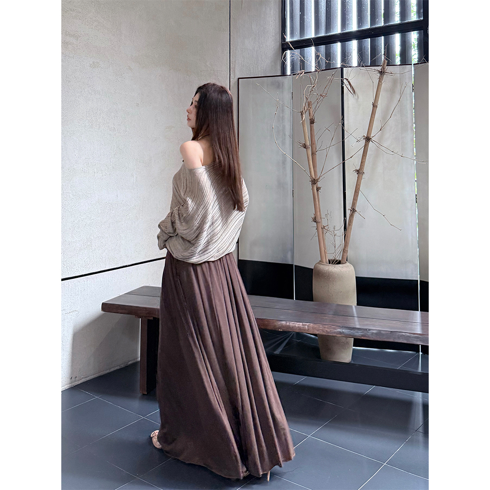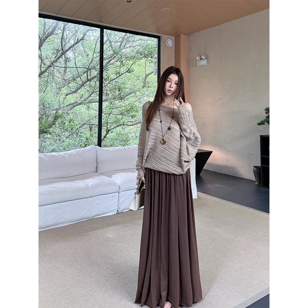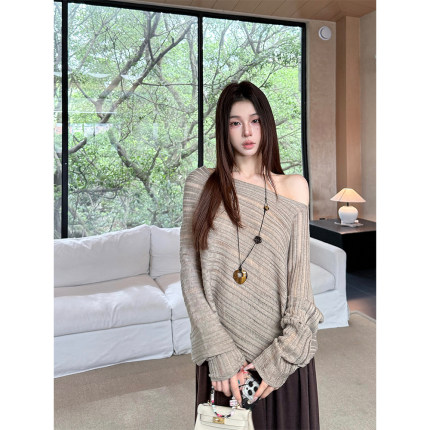 MaxMooroe素缕轻风%法式慵懒风斜肩针织毛衣女秋宽松显瘦T恤上衣