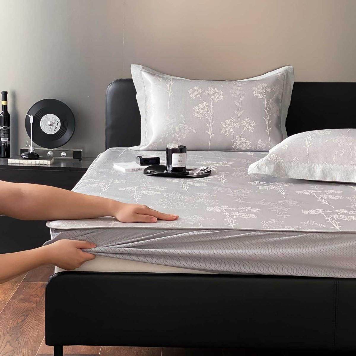 夏季提花冰丝凉席三件套床笠款双人1.5m1.8米空调平铺软席