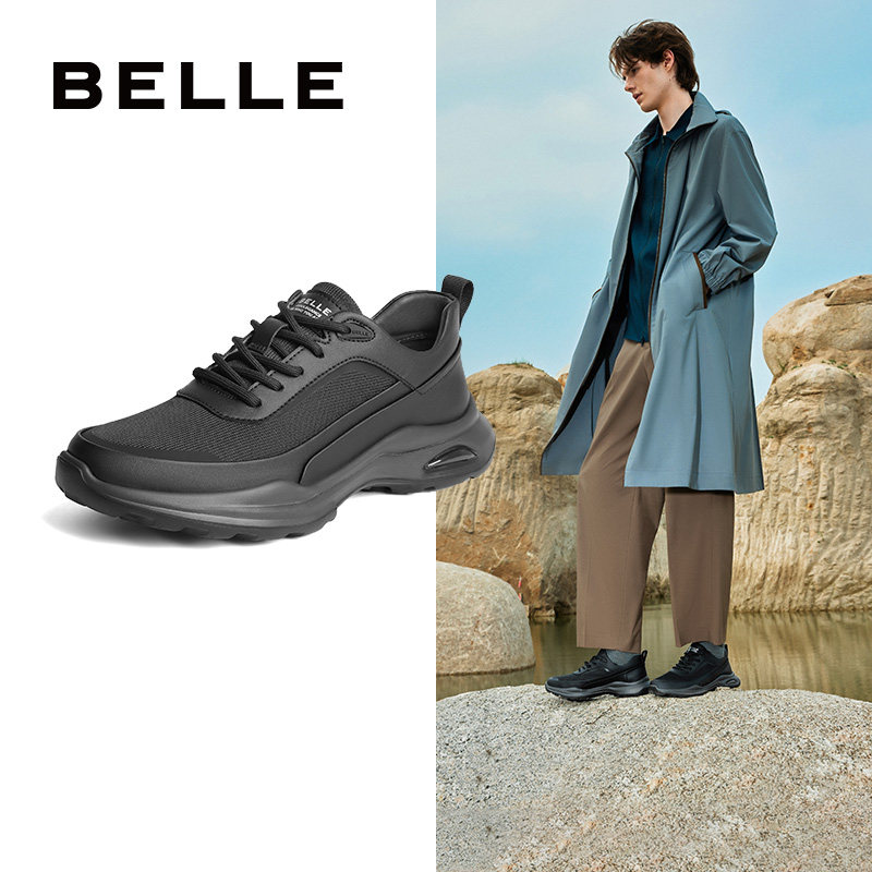 百丽男鞋网面透气休闲新商场同款男士厚底舒适户外运动鞋8AX01CM3