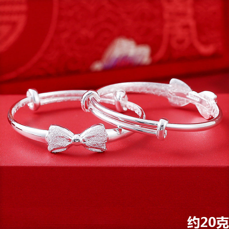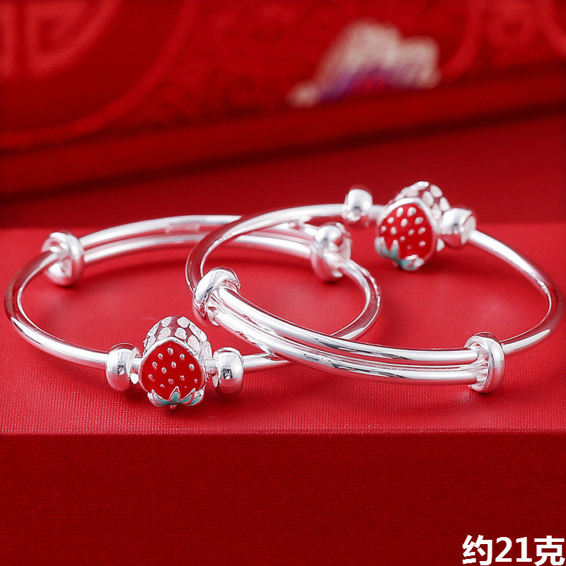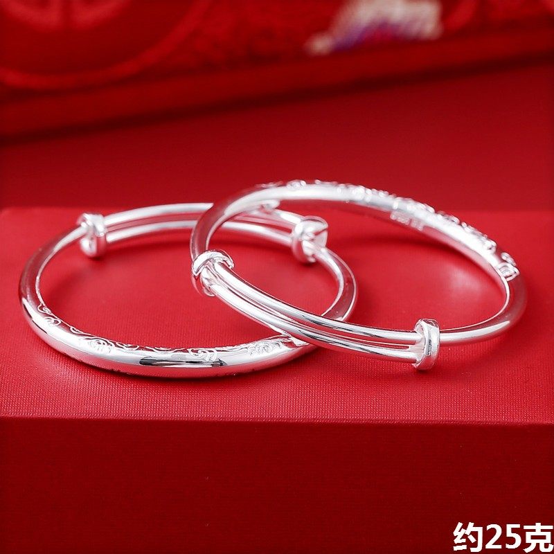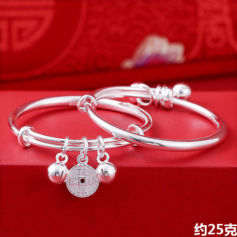 福凤茗银手镯婴儿s999纯银宝宝镯子儿童男女小孩满月银饰百日周岁