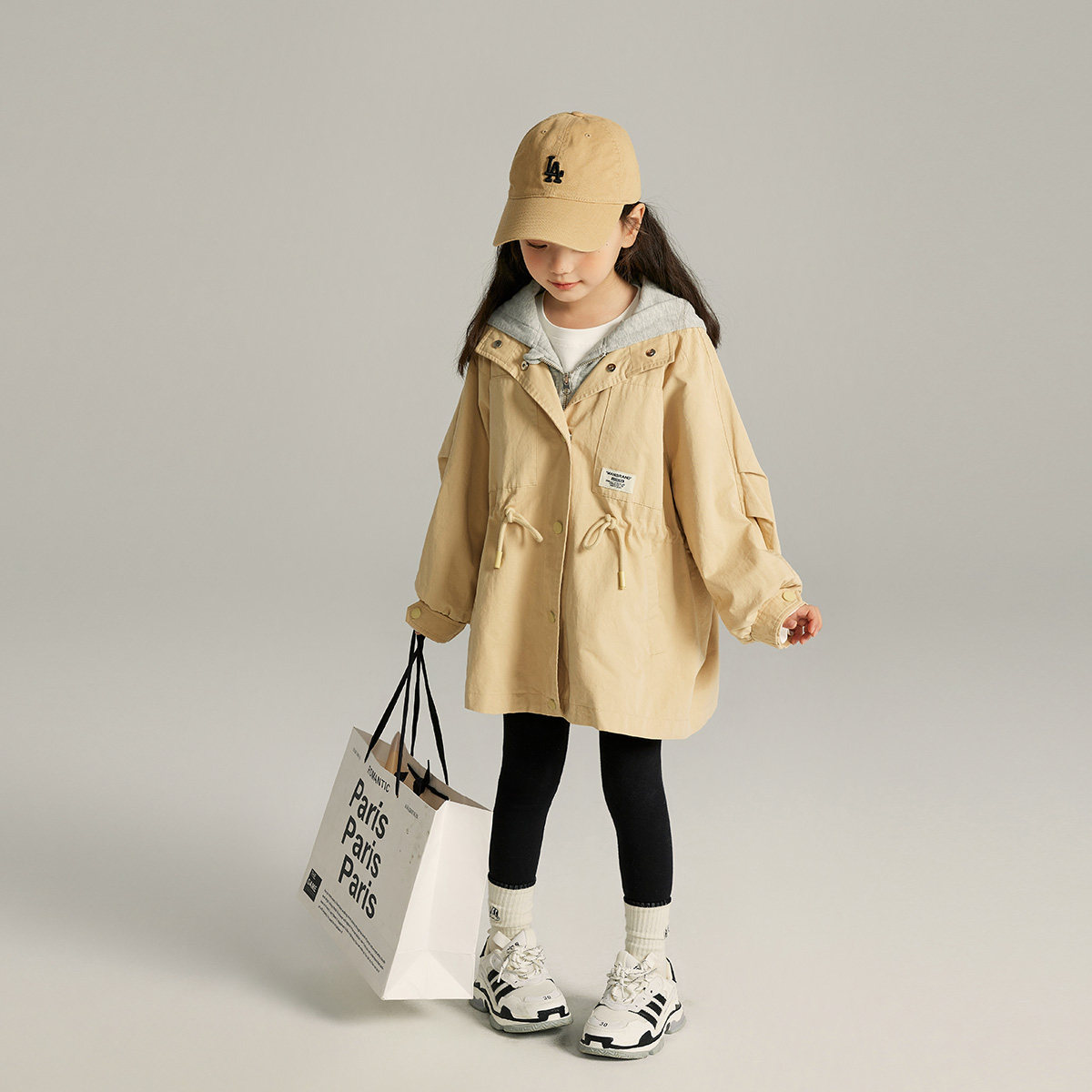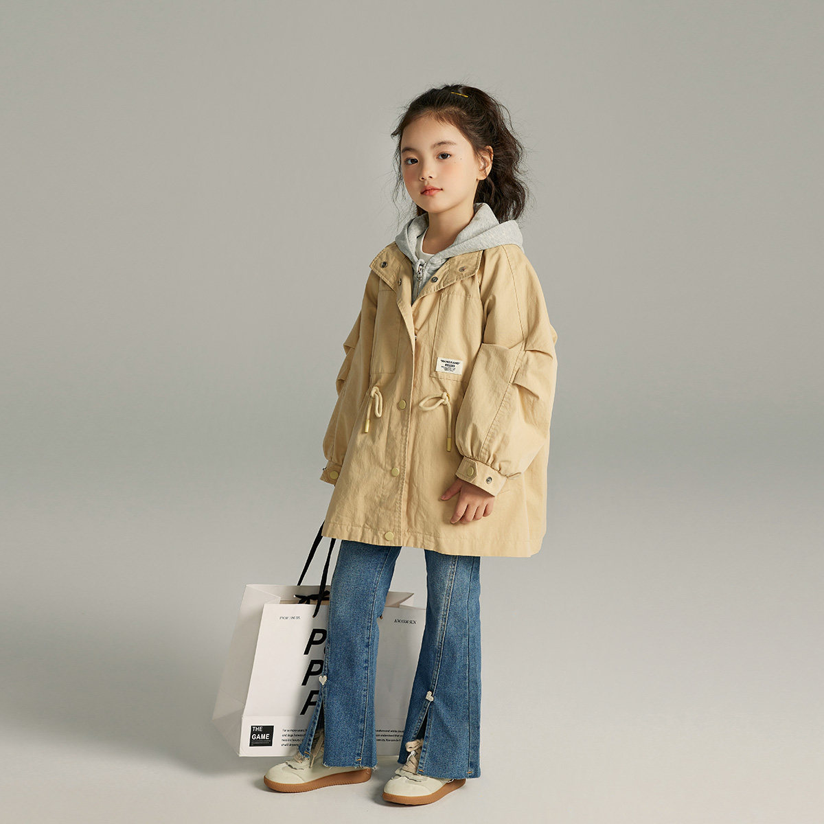 布丁哈鲁春装女童风衣外套2026春秋季新款儿童洋气假两件防风中
