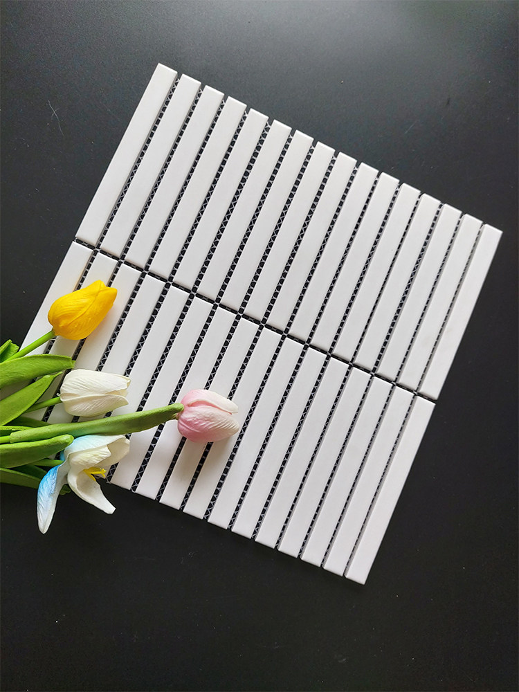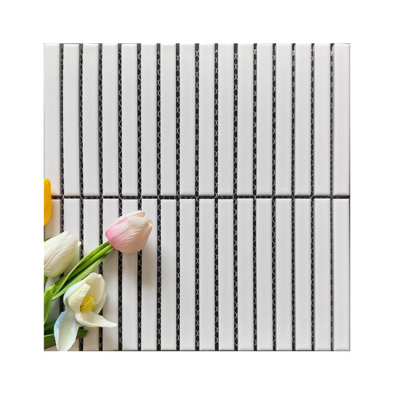 长条长方形条形马赛克陶瓷背景墙黑白瓷砖日式轻奢卫生洗手间内墙