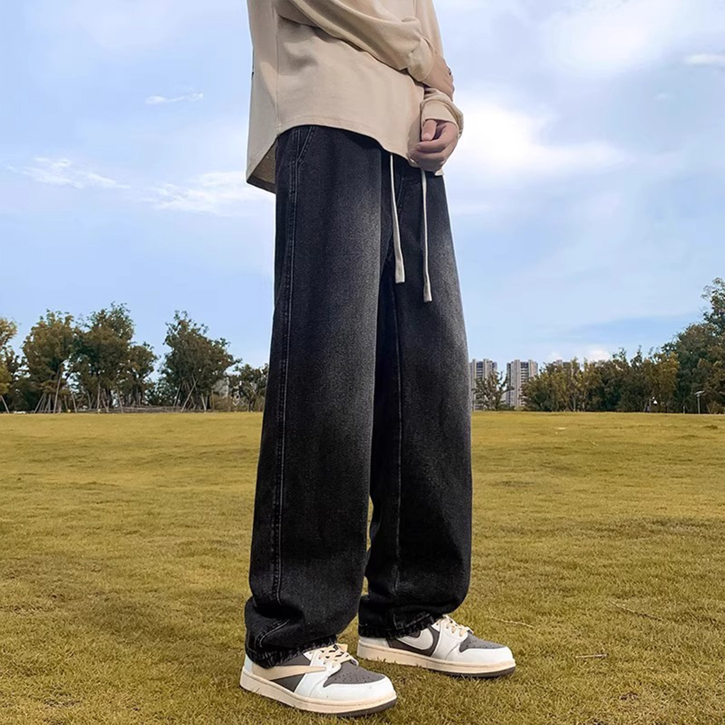 拉夏贝尔牛仔裤男士新款宽松长裤秋季休闲美式直筒裤青少年2025潮