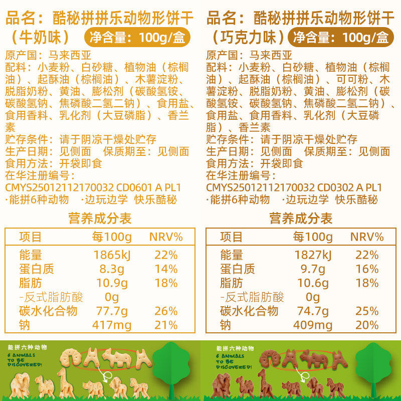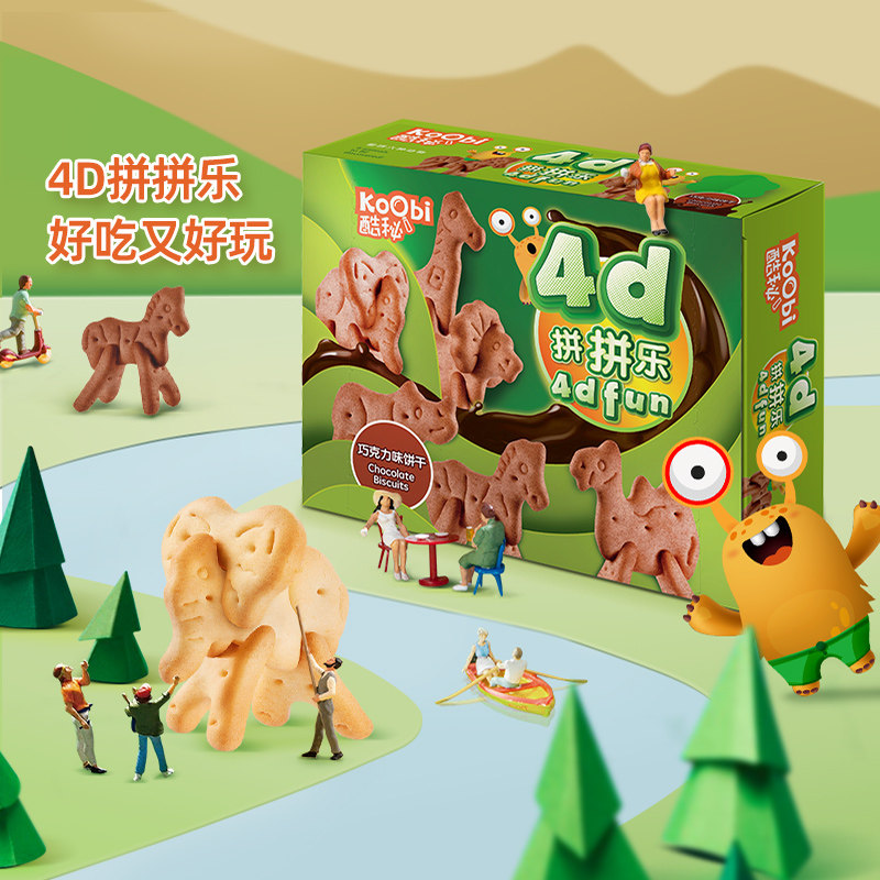 进口酷秘4D拼拼乐积木动物饼干牛奶+巧克力味100g*2盒儿童零食品