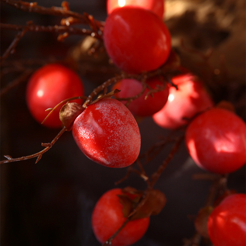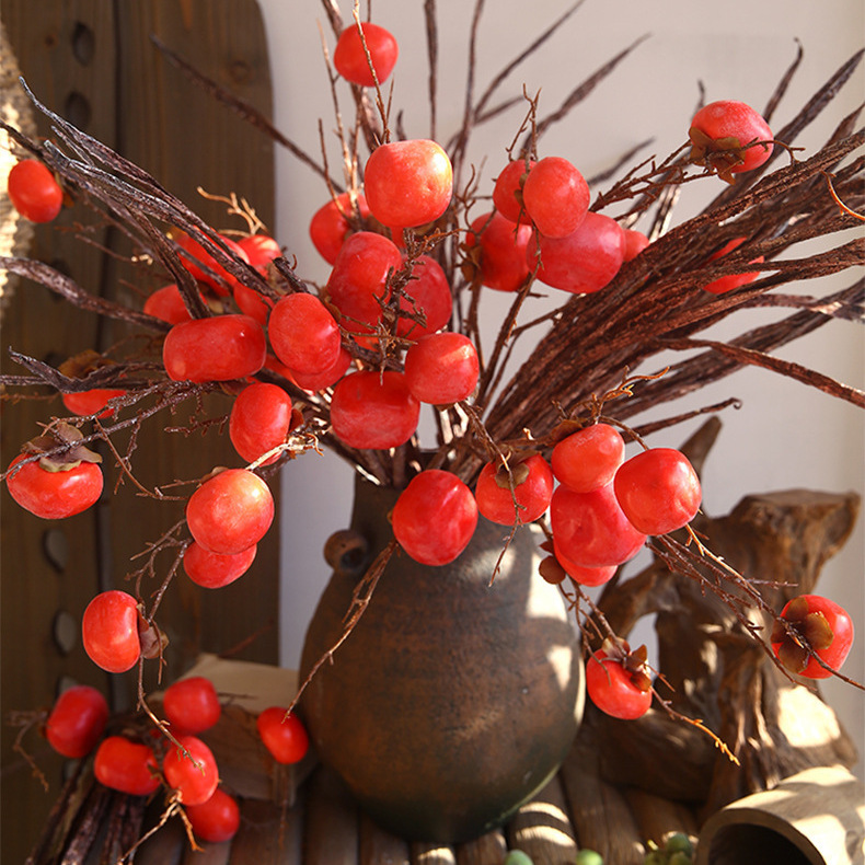 仿真柿子果实树枝假花摆件客厅装饰摆设插花花束落地干花家居软装