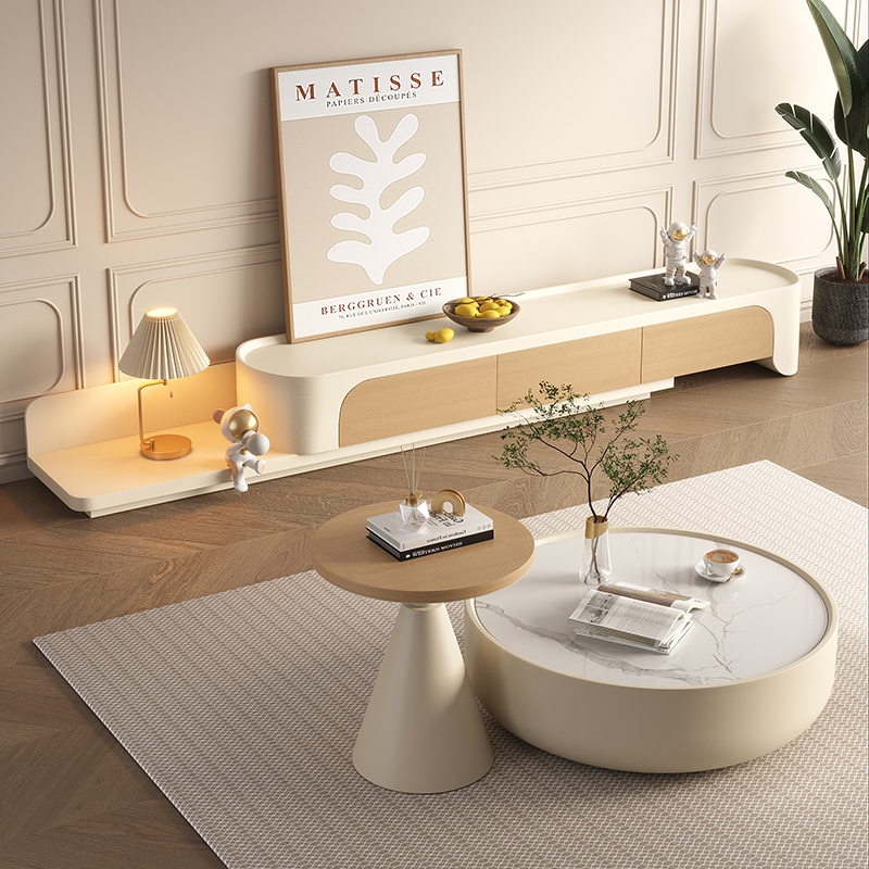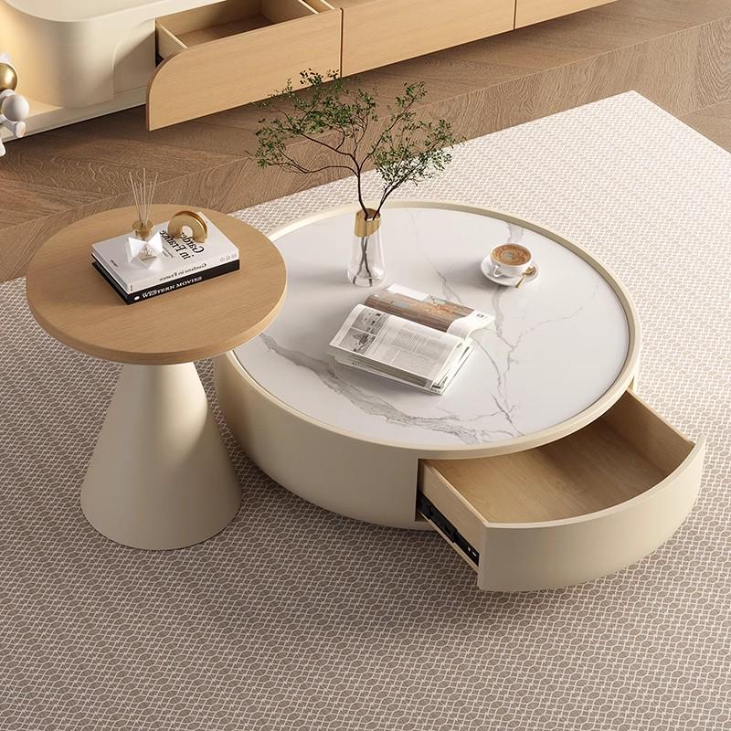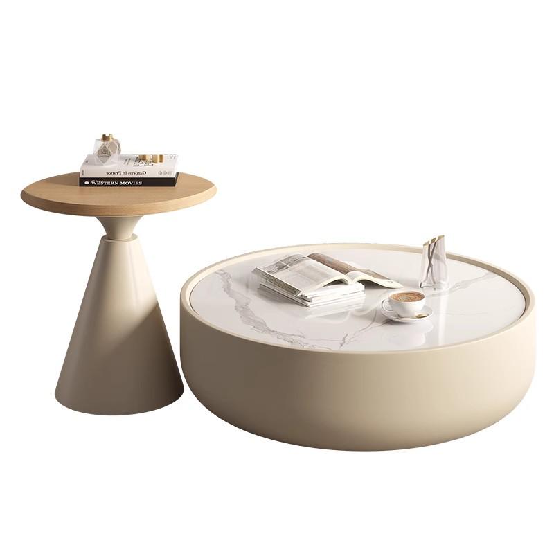 奶油风岩板圆茶几小户型客厅家用大小边几简约现代法式圆形小桌子