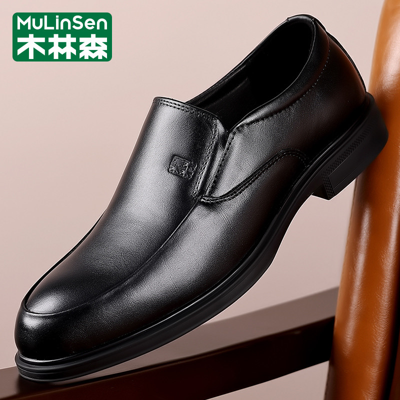 木林森皮鞋男款冬季商务西装休闲一脚蹬头层牛皮爸爸马丁工装潮鞋