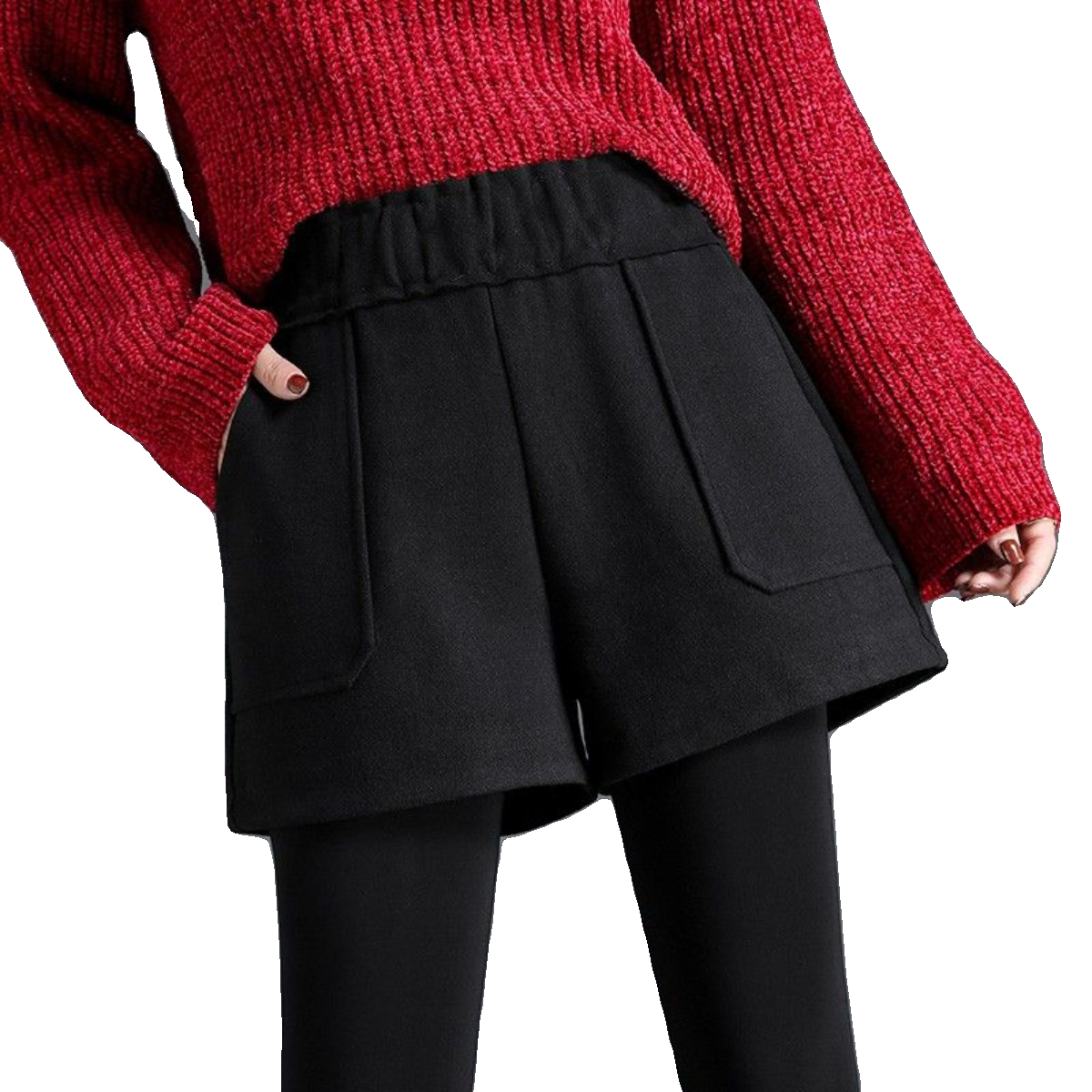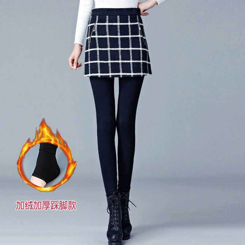 秋冬季假两件打底裤毛呢短裤女外穿百搭加绒加厚阔腿裤保暖靴裤子