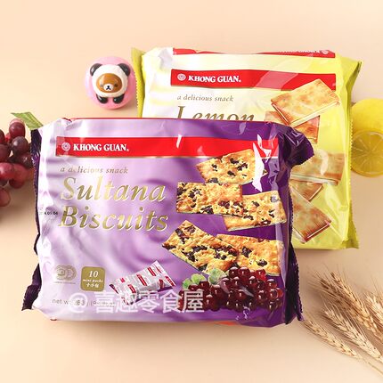 新加坡进口康元柠檬味夹心饼葡萄饼干提子曲奇办公室休闲小零食品