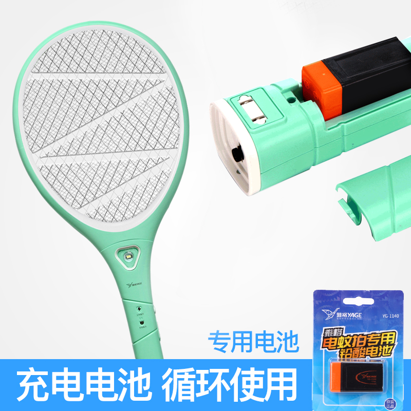 雅格电蚊拍充电式打蚊子苍蝇拍强力安全大网面LED灯家用灭蚊器