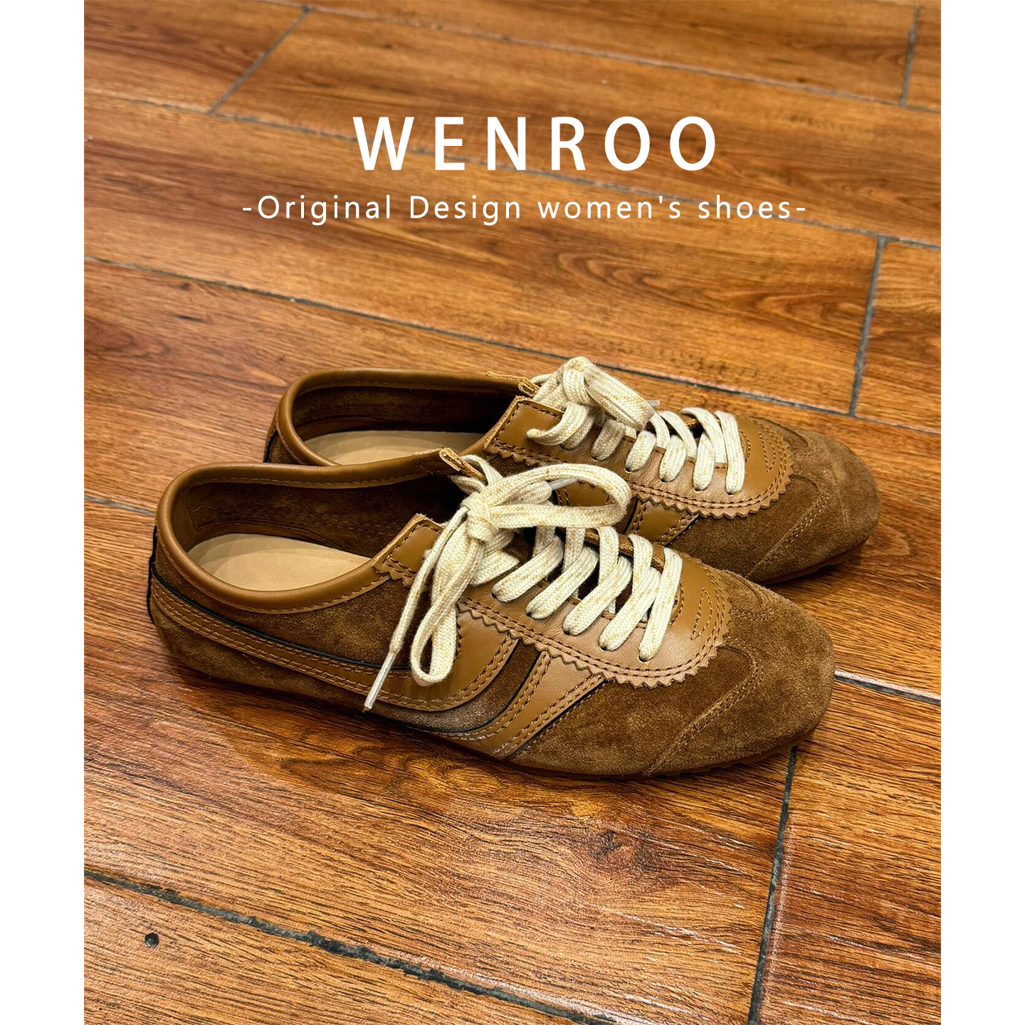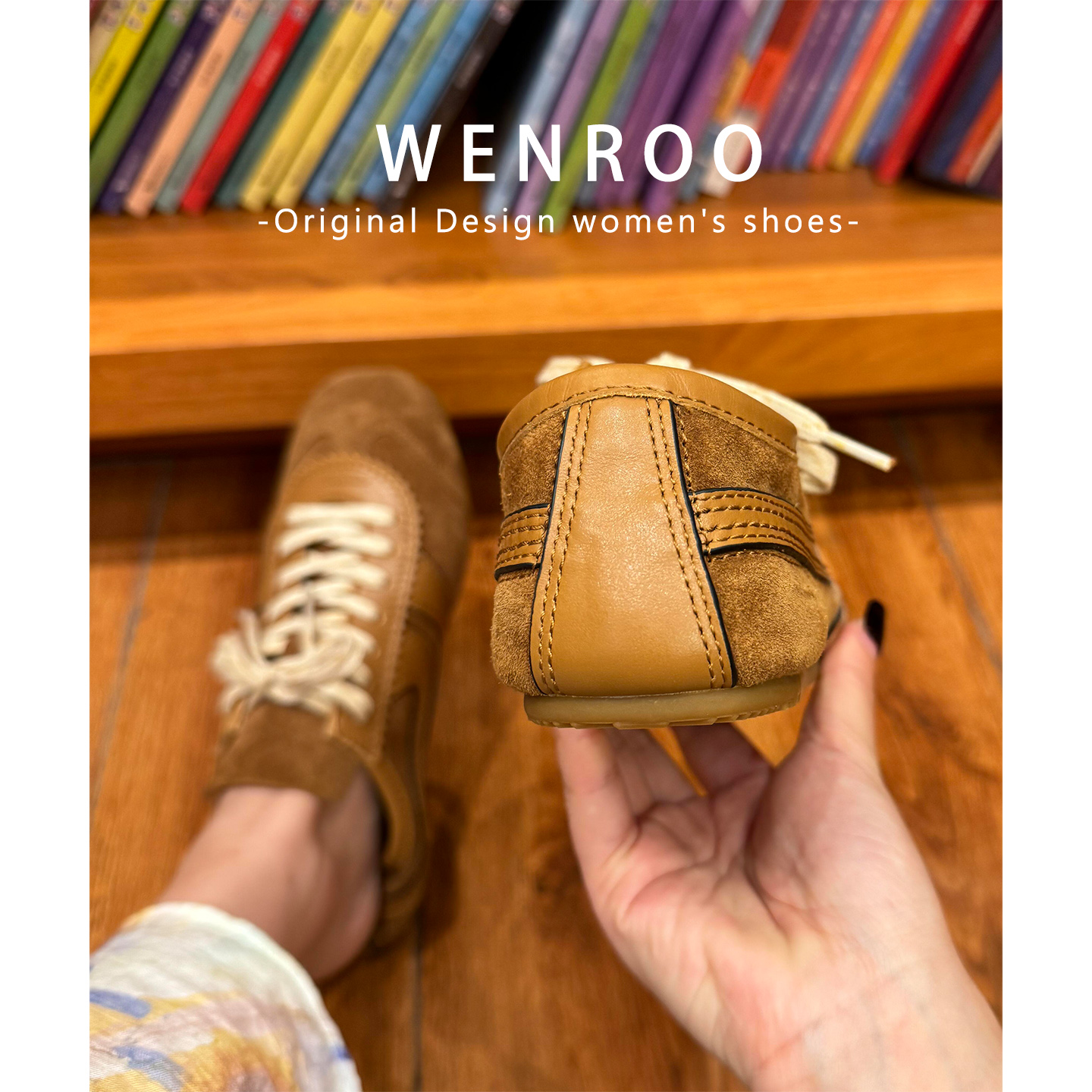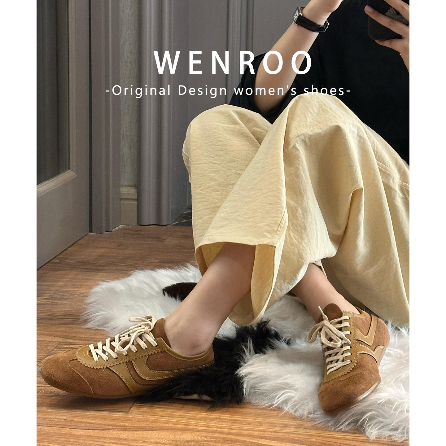 娜娜同款~复古棕色系带增高德训鞋女2025新款平底休闲运动阿甘鞋