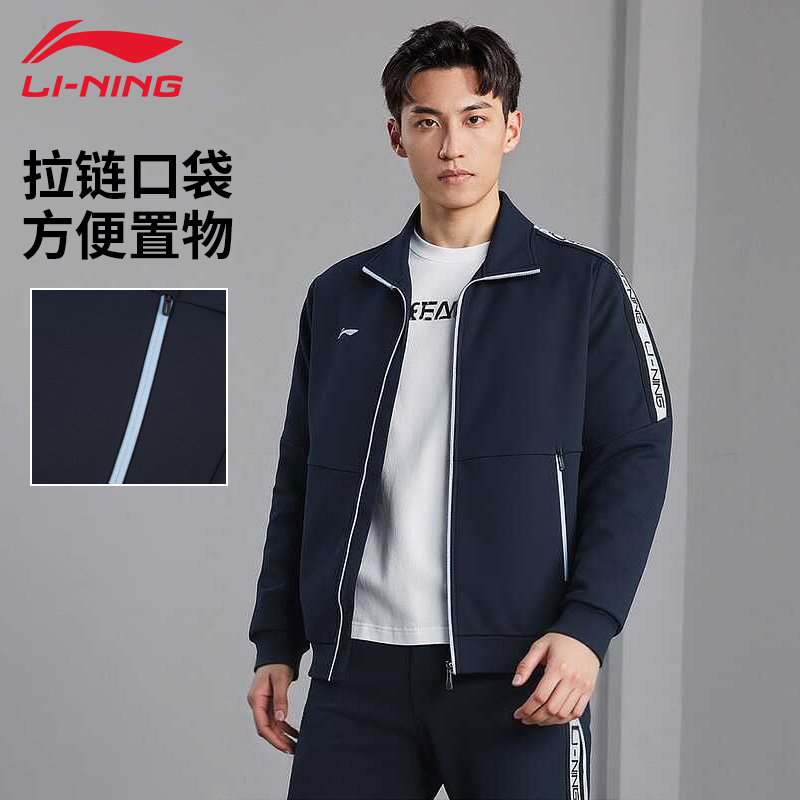 李宁外套男春秋跑步训练上衣健身休闲立领无帽卫衣运动服AWDUA71