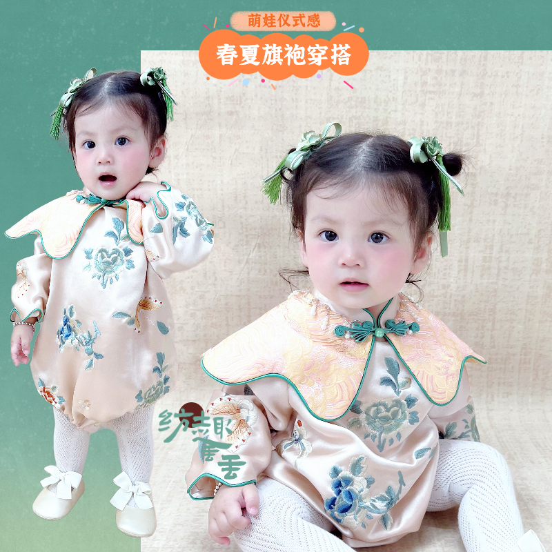 周岁礼服女婴满月百日宴周岁礼服包屁中式旗袍真丝醋酸高端定制