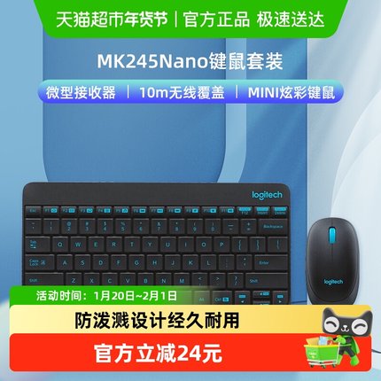 罗技MK245nano无线键鼠套装电脑台式笔记本游戏办公便携