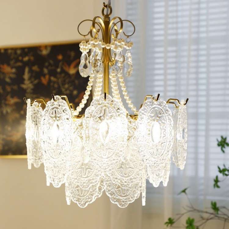 卧室灯 法式 田园复古轻奢简约客厅餐厅灯珍珠宝水晶吊灯