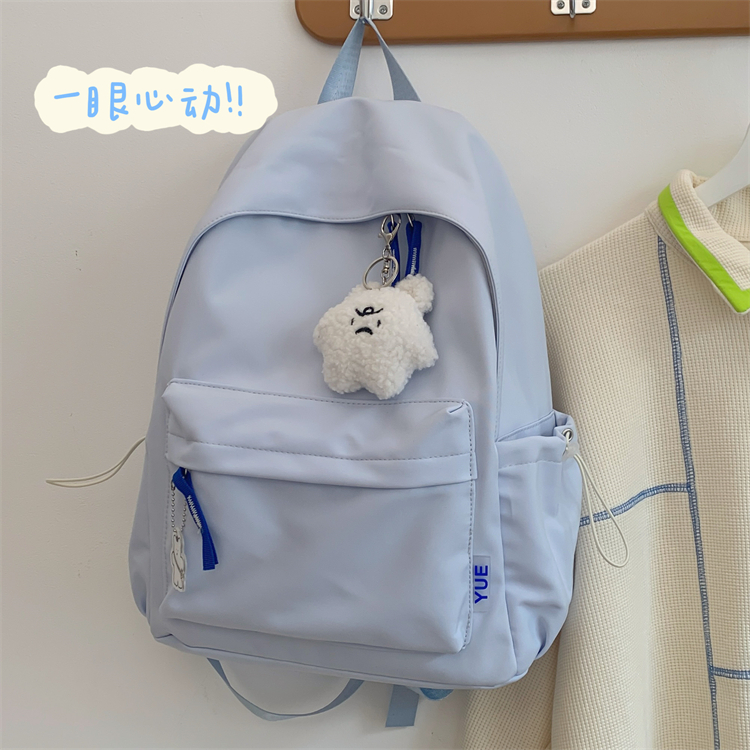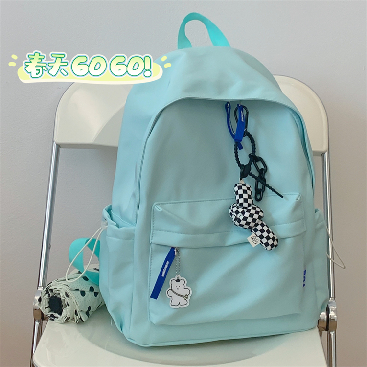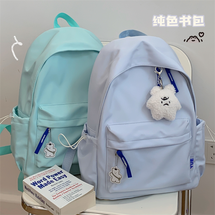 韩版ins简约软妹少女书包校园背包 日系原宿chic古着感纯色双肩包