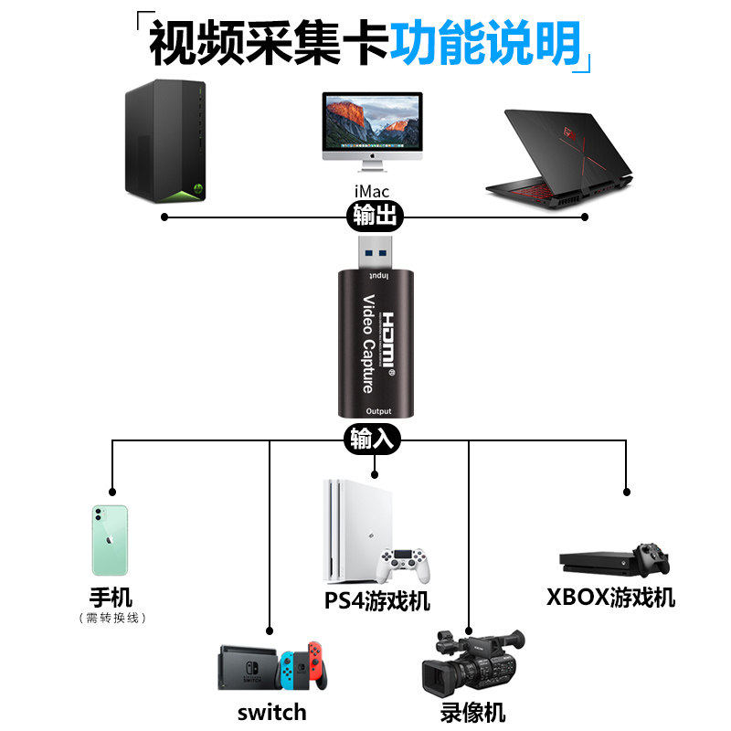 USB视频采集卡电脑高清录制器Switch游戏直播机顶盒HDMI转接录像