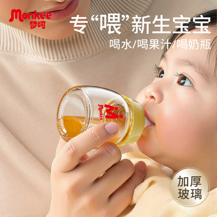 梦呵新生婴儿玻璃小奶瓶迷你小容量60ml便携外出喝水喂药果汁奶瓶