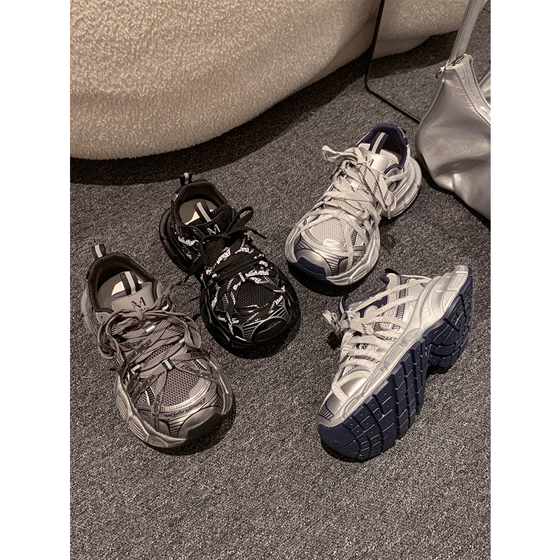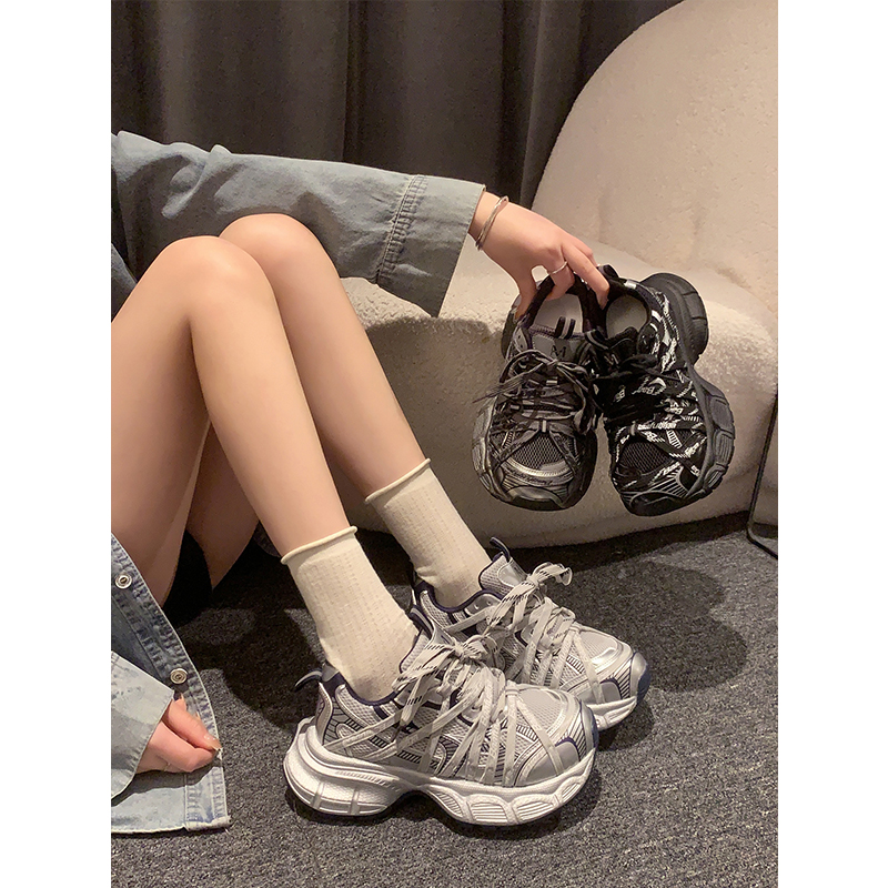 美拉德银色老爹鞋女款2025新款秋季黑色鞋子厚底休闲鞋增高运动鞋