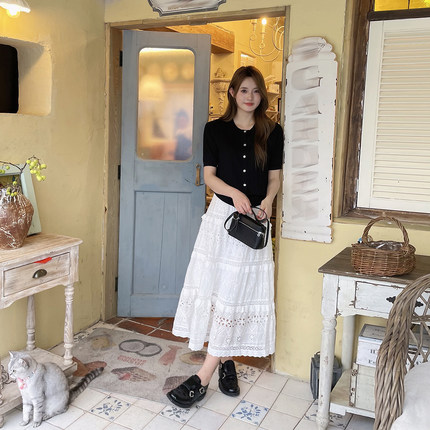 晶咕白标DADATATA 针织开衫蕾丝半身裙两件套女秋季新款时尚套装