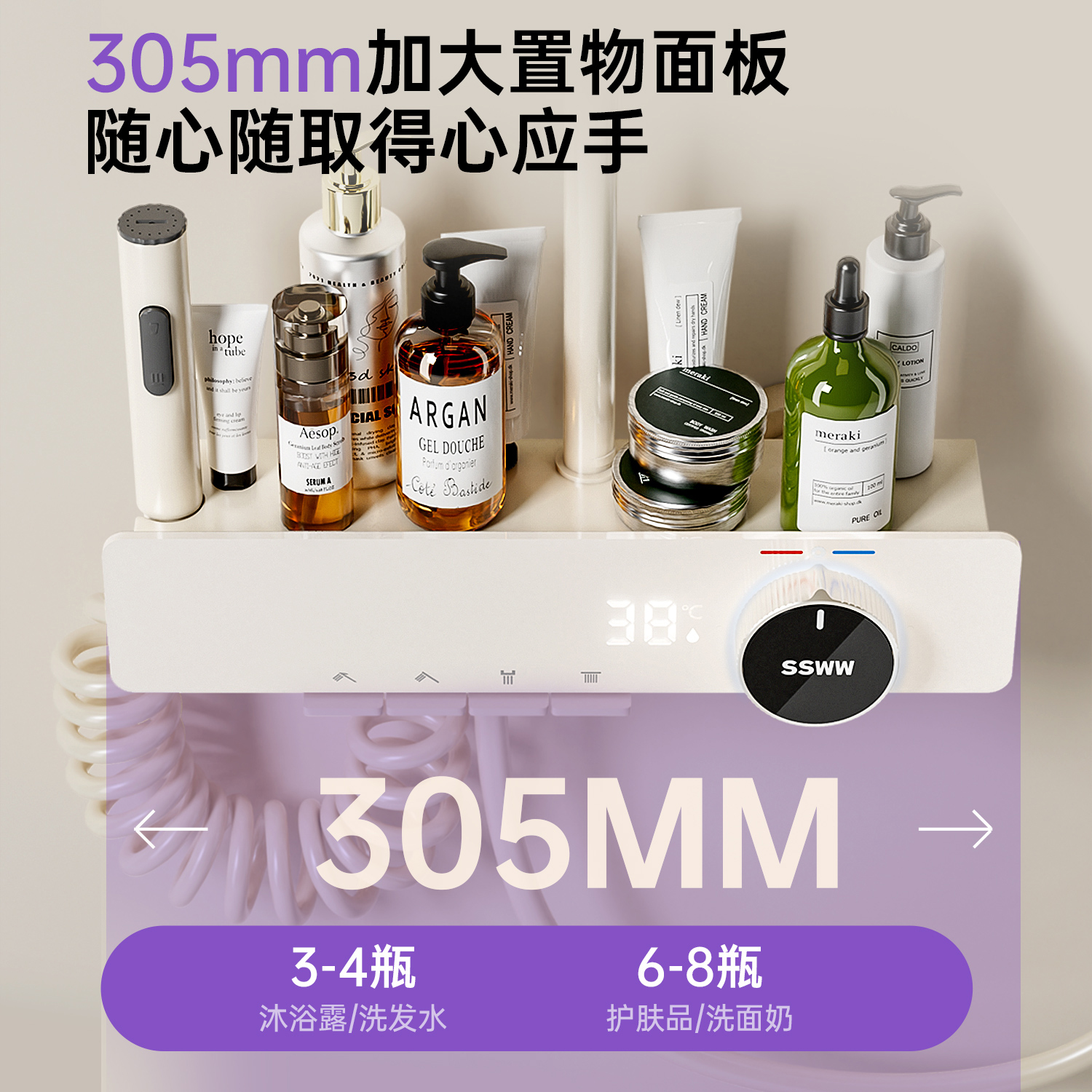 浪鲸淋浴花洒套装按摩钢琴按键浴室沐浴器置物台家用精铜主体628