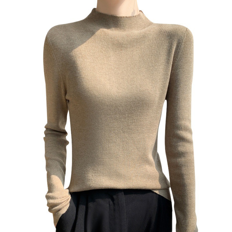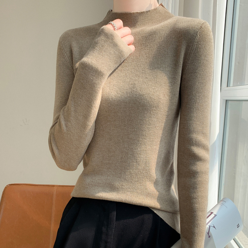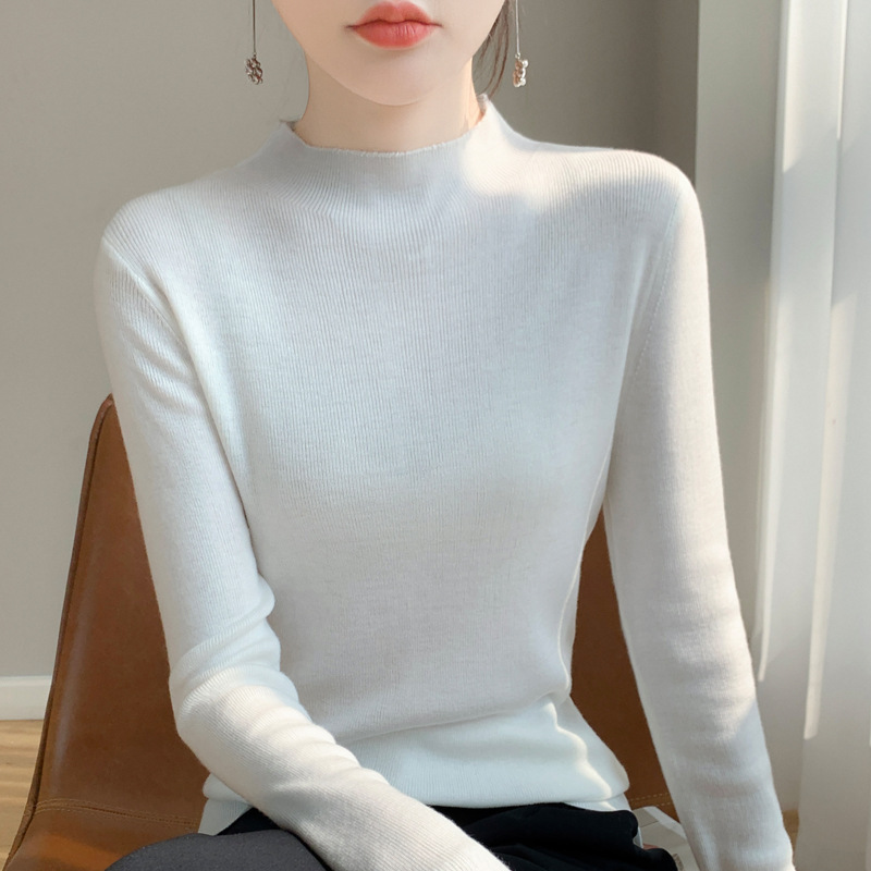 光精纺半高领毛衣女内搭薄打底衫长袖针织衫细丝秋冬亲肤单件