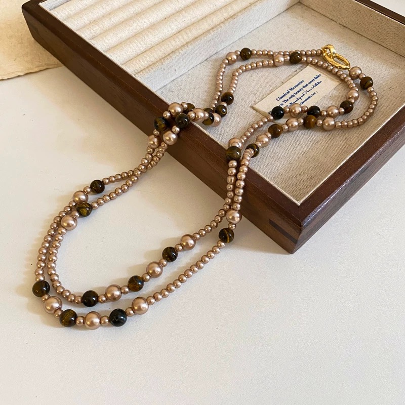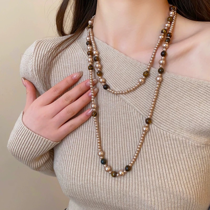 叠戴长款仿虎眼石珍珠款毛衣链轻奢高级感大气高档时尚百搭配饰