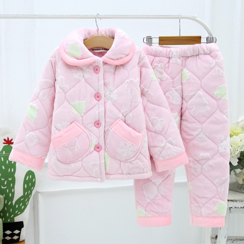 秋冬季儿童睡衣法兰绒夹棉加厚款男童女童宝宝小孩男孩珊瑚绒套装