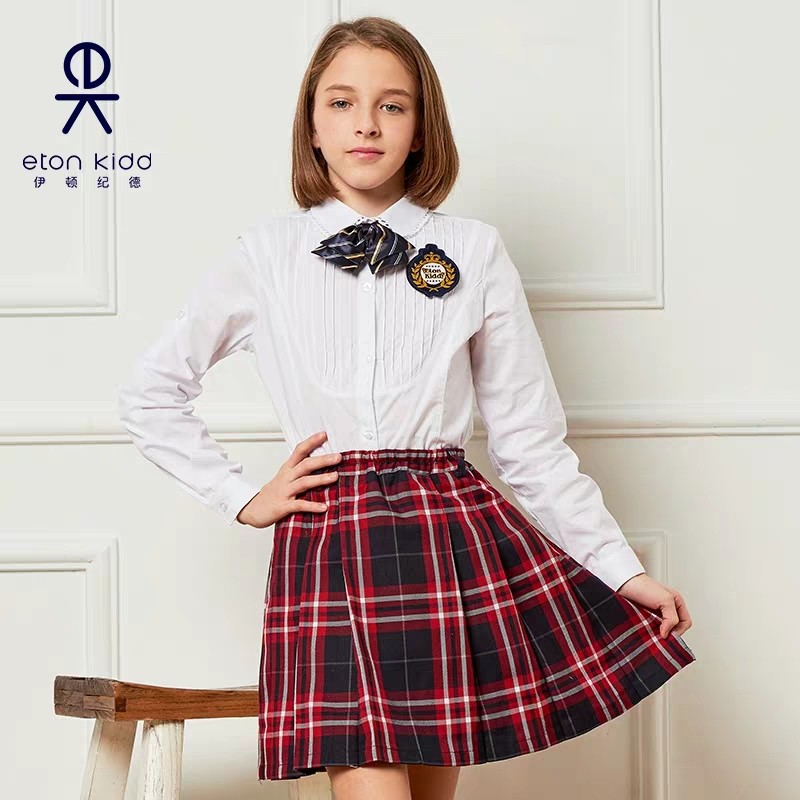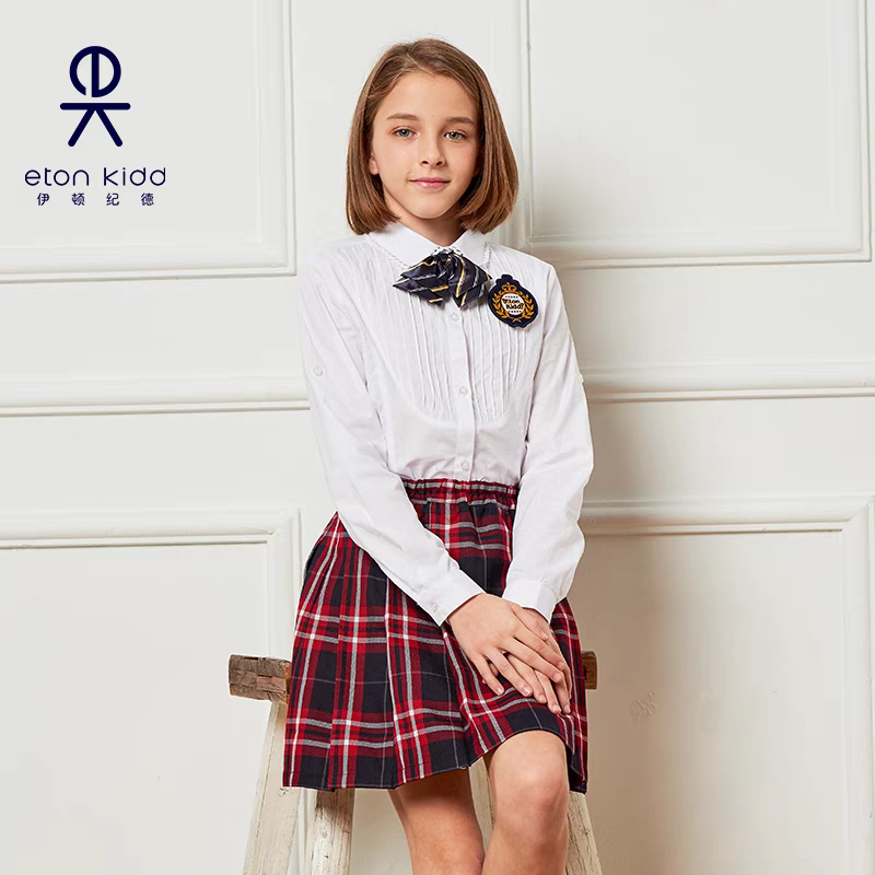 伊顿纪德校服儿童白衬衣女大童春秋款淑女长袖中小学生衬衫09C202