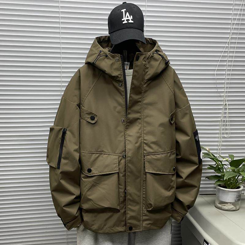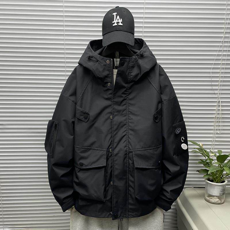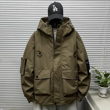 工装夹克男春秋季加肥大码日系潮牌户外胖子青年冲锋宽松上衣外套