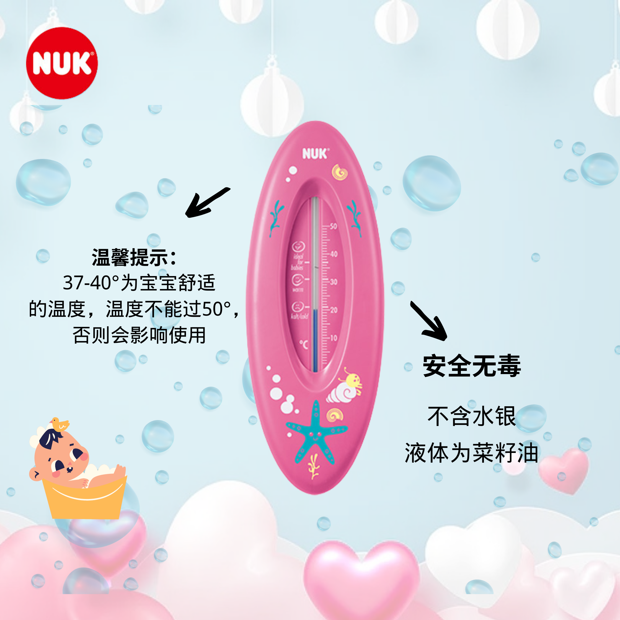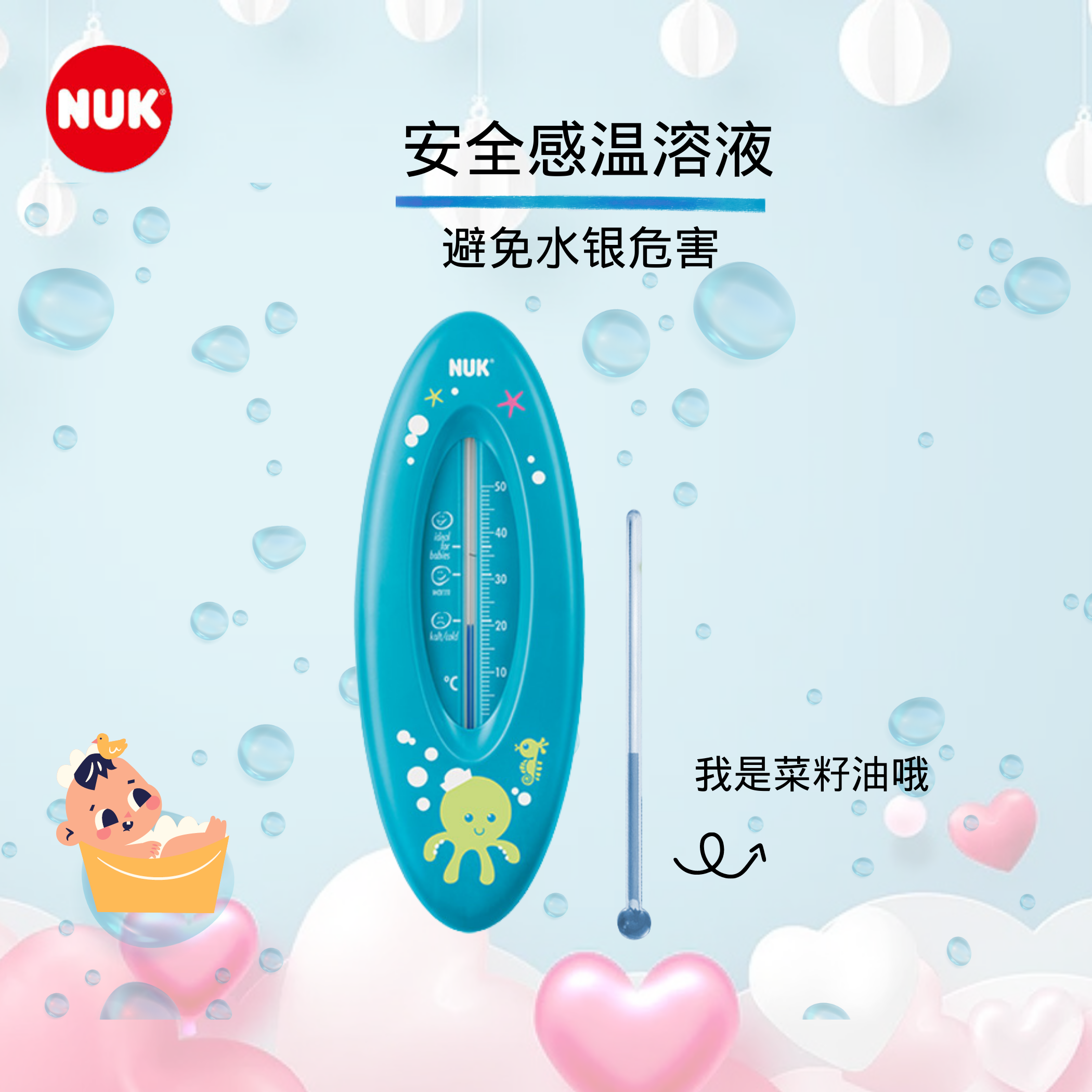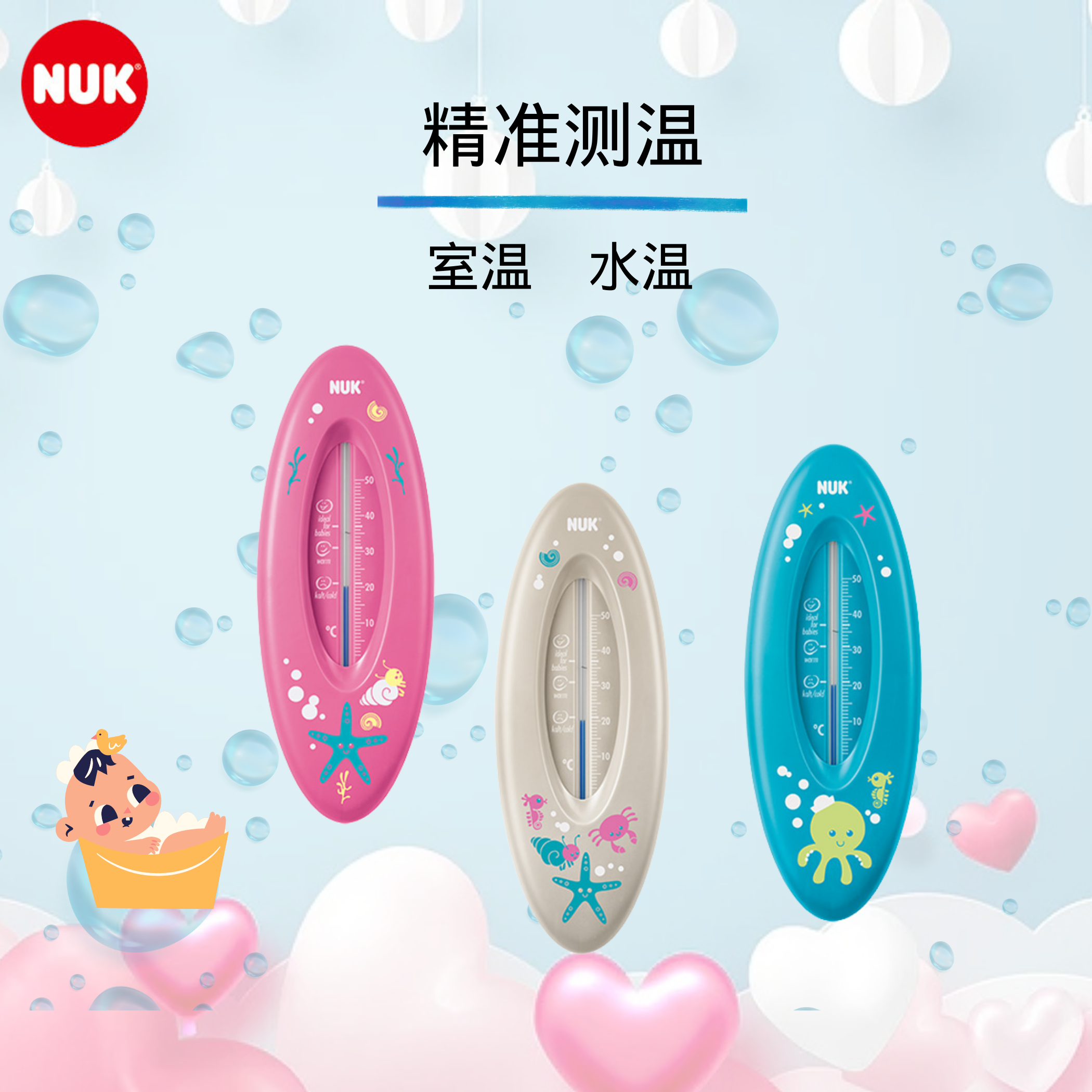 德国进口NUK水温计宝宝洗澡家用温度计浴盆浴缸水温计测量无水银