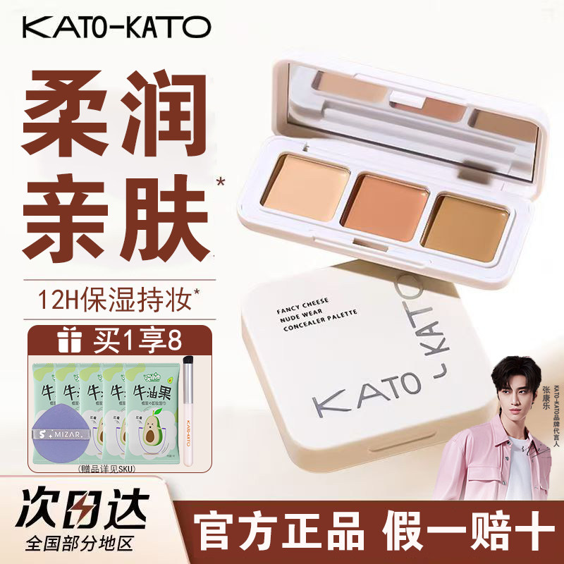 KATO-KATO遮瑕膏三色遮瑕盘痘印黑眼圈干油皮脸部笔KATO官方正品