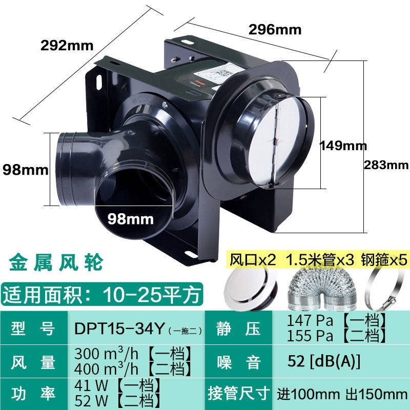 绿岛风排气扇一拖二管道新风机酒内静音店民宿卫生间换气扇强力室