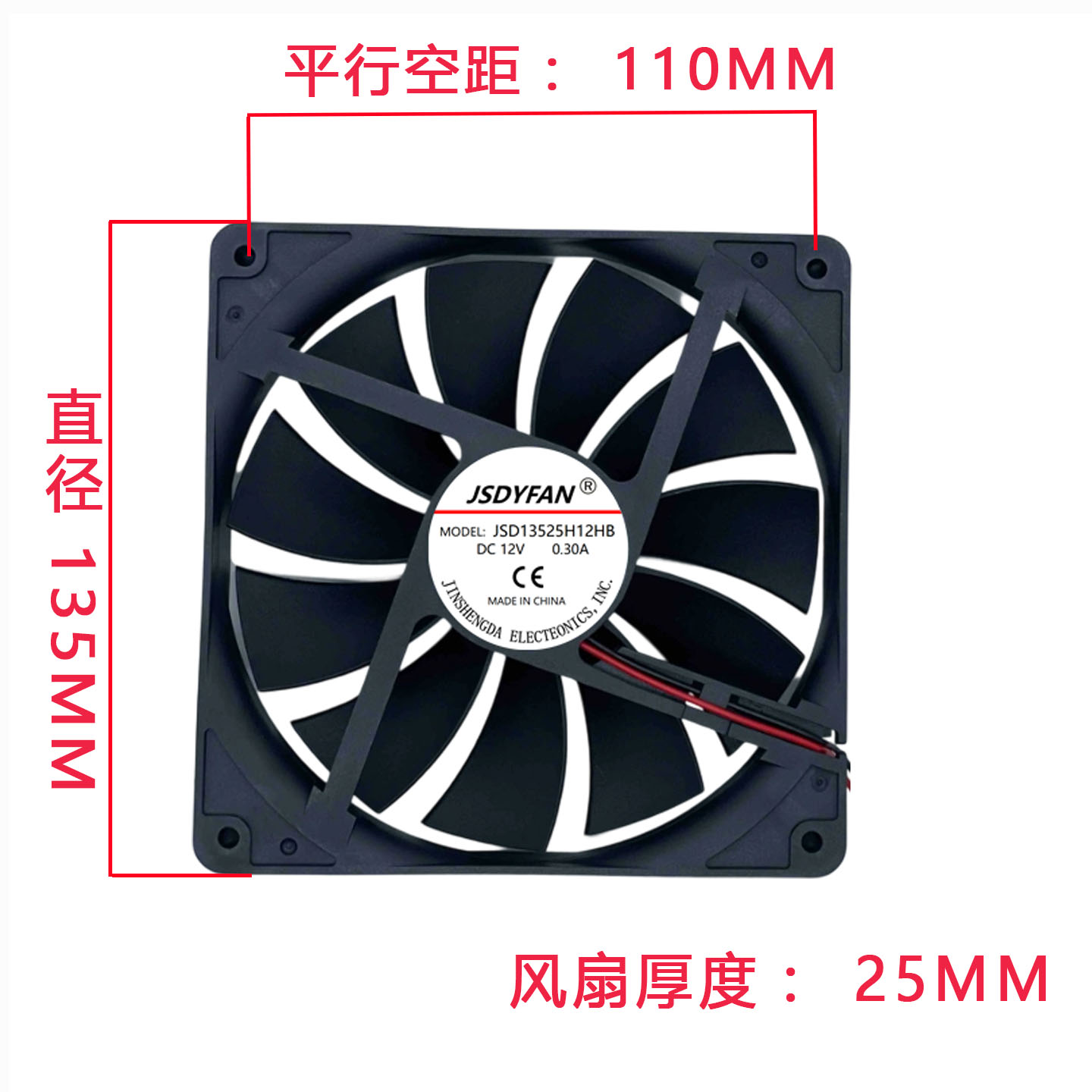 全新13525 12V 13.5CM两线静音主机机箱电源大风量散热风扇