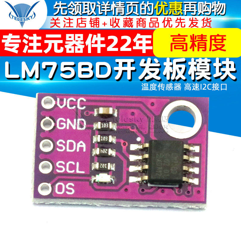LM75 温度传感器 高速I2C接口 高精度 LM75BD开发板模块LM75AD
