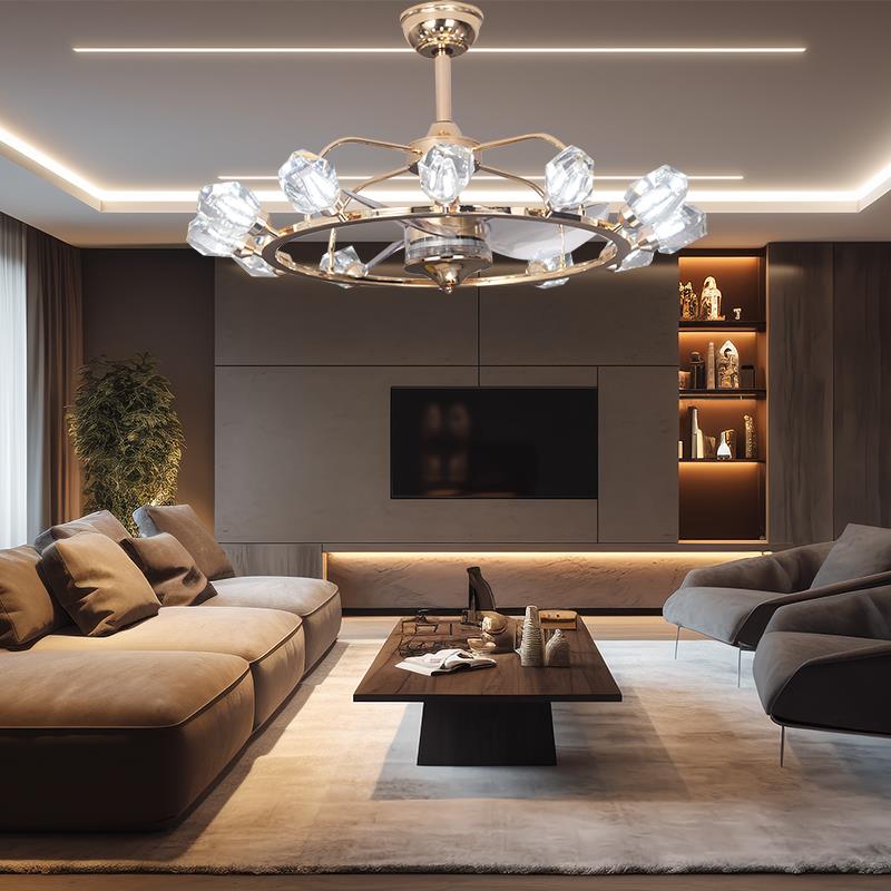 新款水晶风扇灯餐厅客厅吊扇灯卧室风扇吊灯照明一体灯全铜电机
