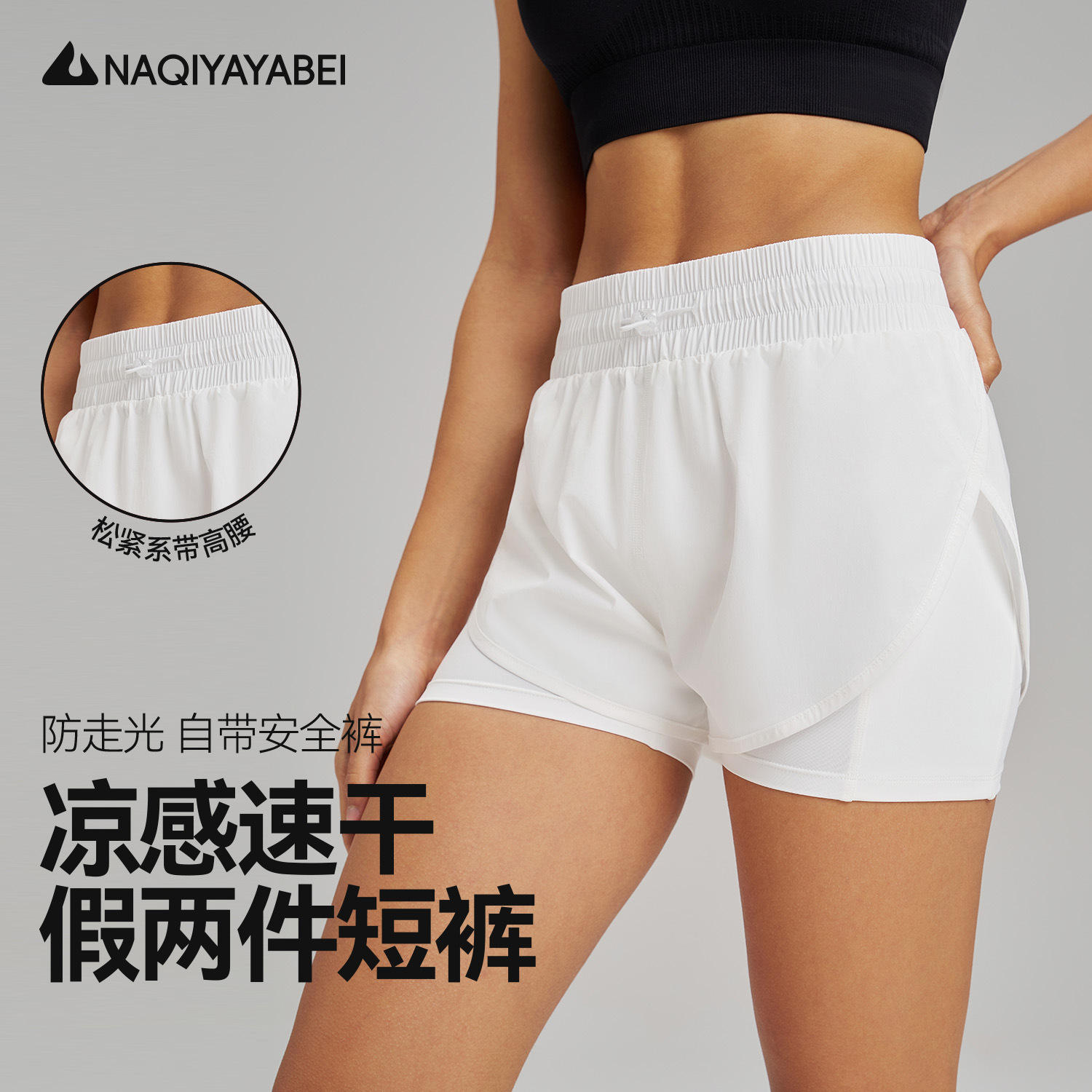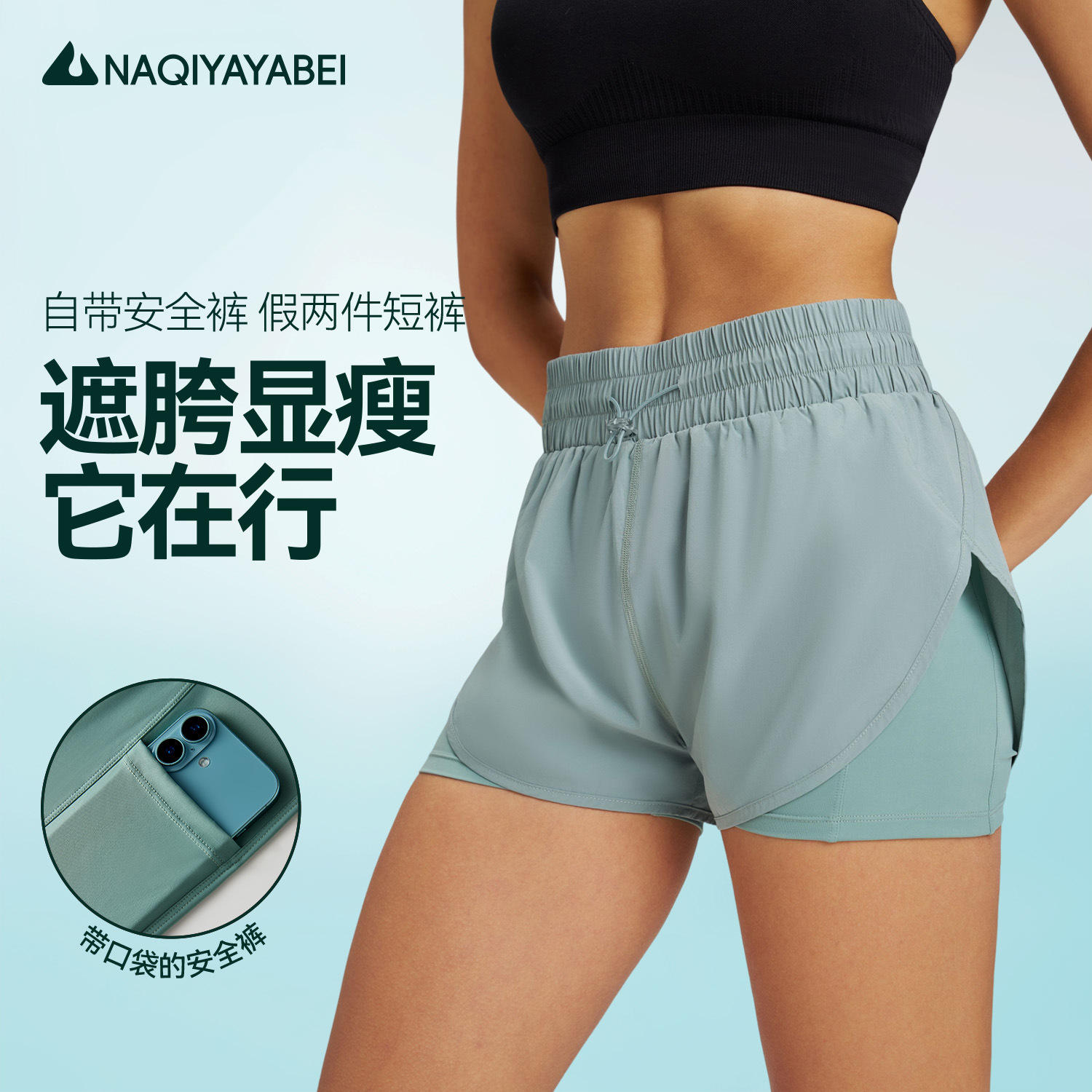 夏季外贸欧美热销运动健身短裤高腰显瘦跑步假两件防走光三分裤女