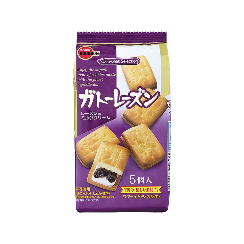现货日本 布尔本Bourbon提子干朗姆酒黄油/焦糖夹心酥性饼干10枚