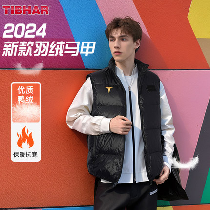 TIBHAR挺拔羽绒马甲男女2024新款乒乓球运动鸭绒保暖防风加厚立领
