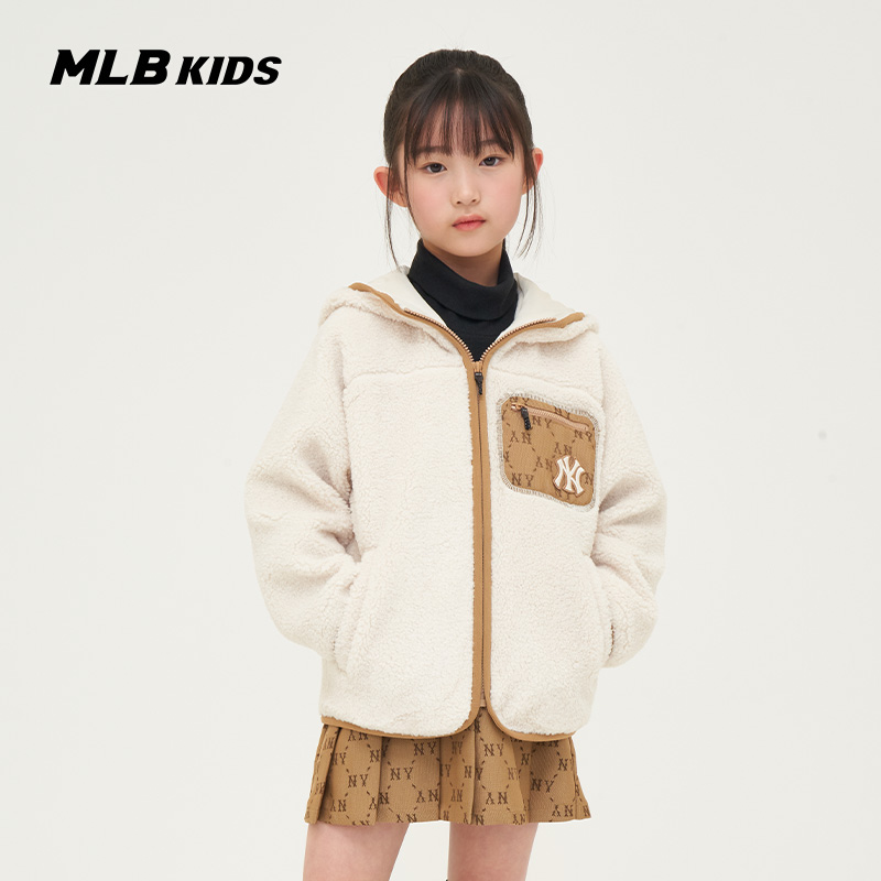 MLB儿童官方钻石老花复古潮奢仿羊羔绒外套连帽设计年秋冬款