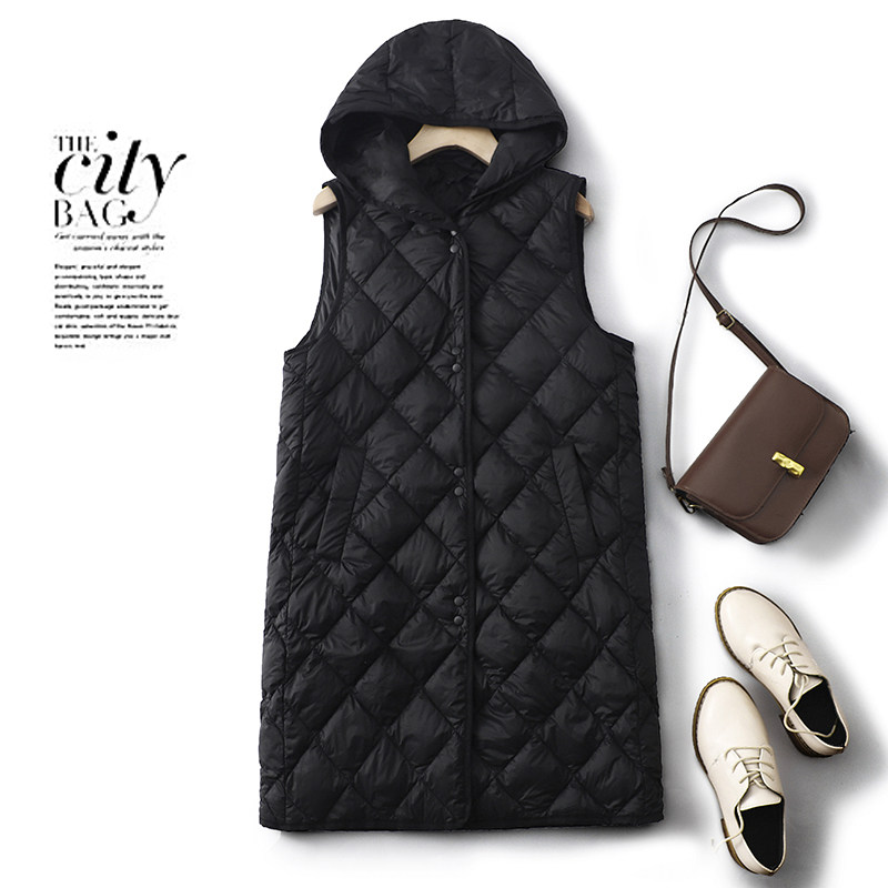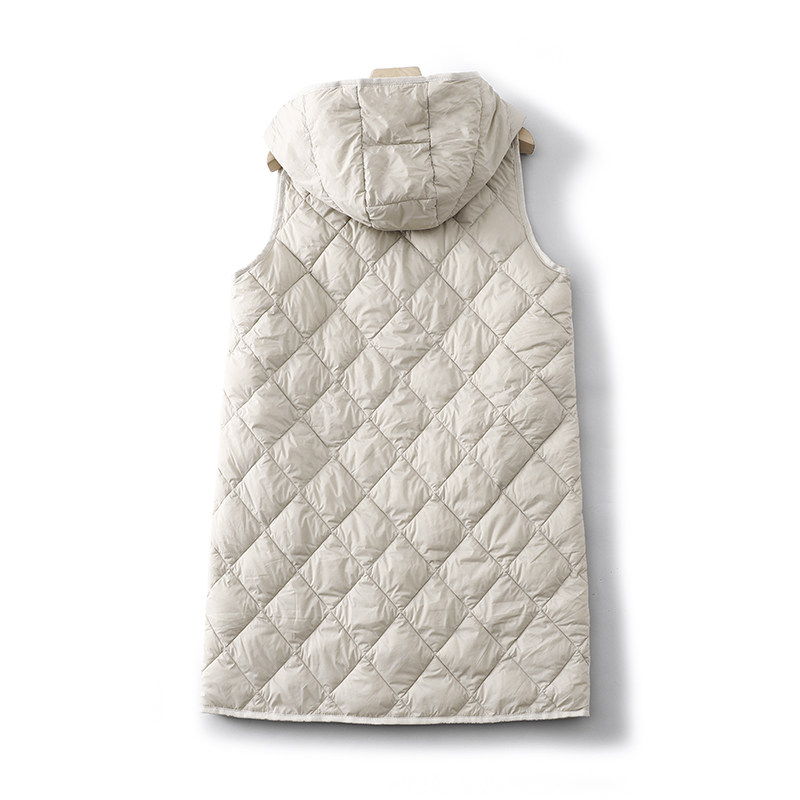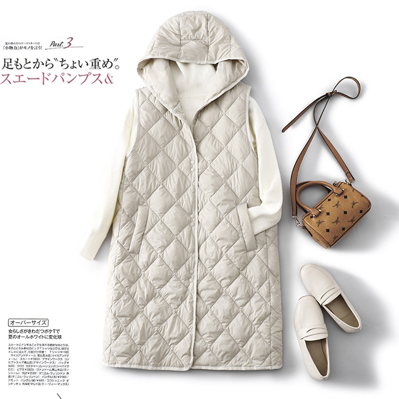 白色中长款连帽马甲女外穿秋冬棉服内搭内胆羽绒棉背心~清仓特价