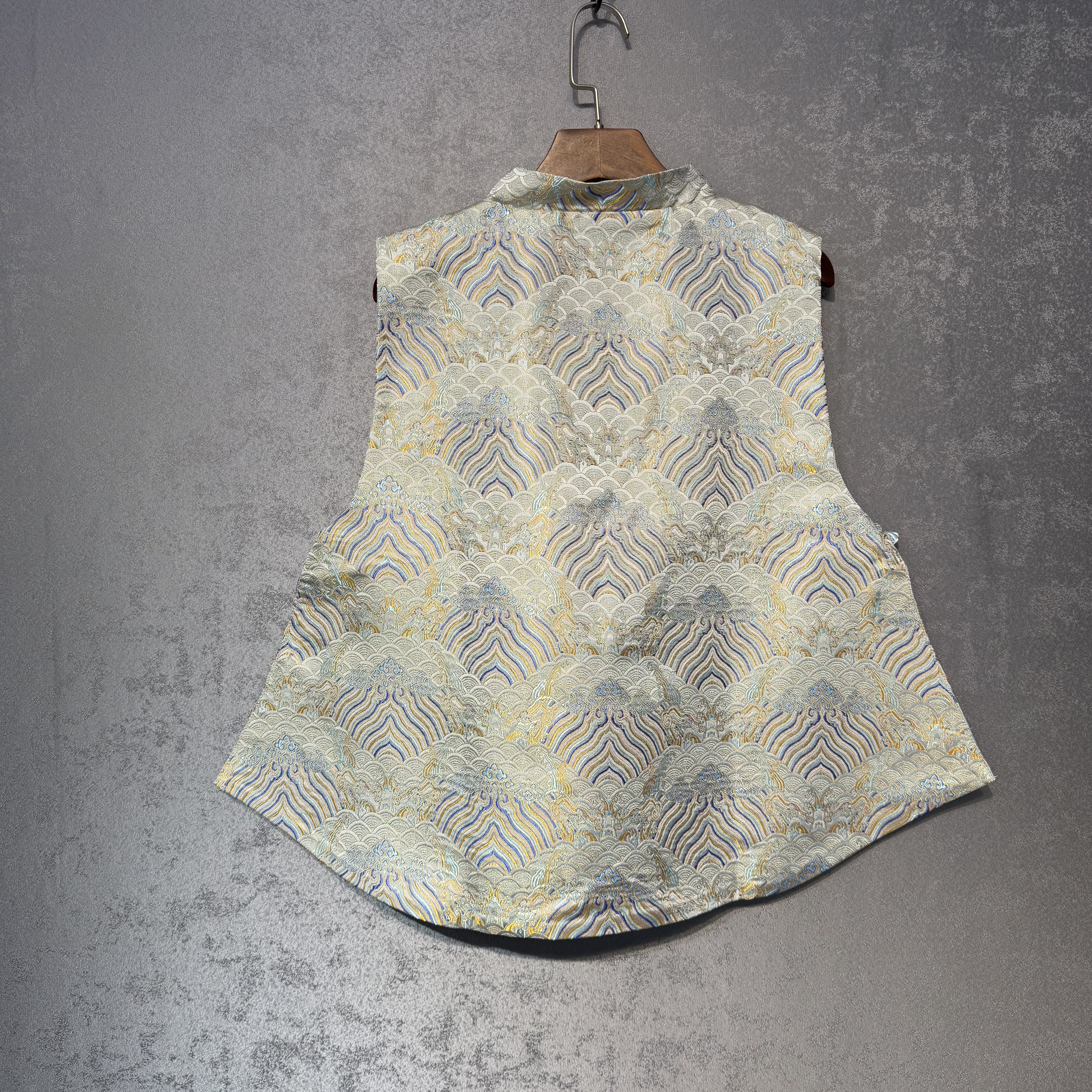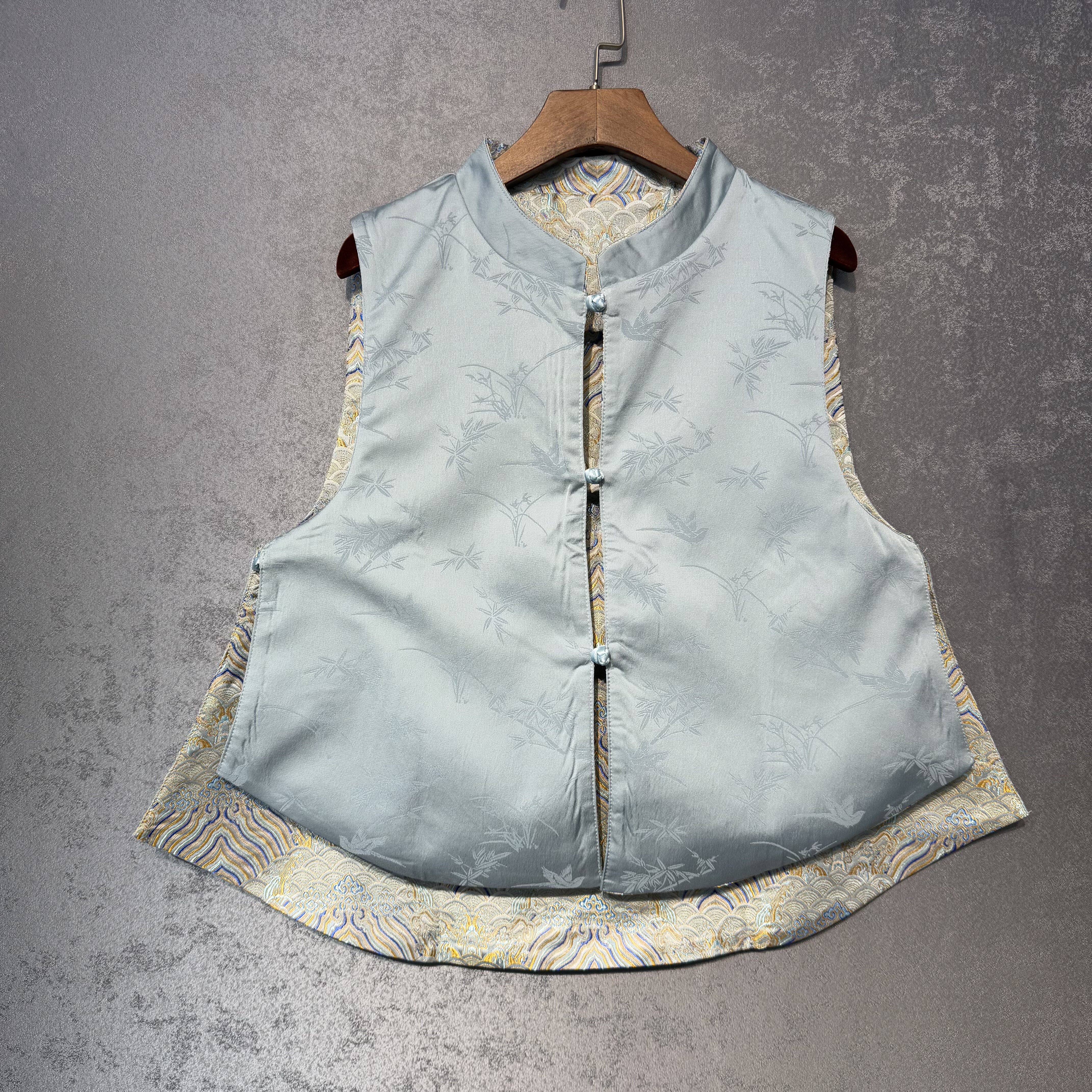 2025年秋双面穿金丝线中国风提花盘扣马甲无袖坎肩新中式马夹上衣
