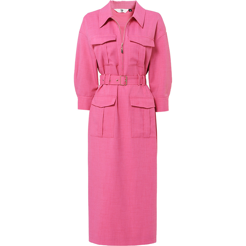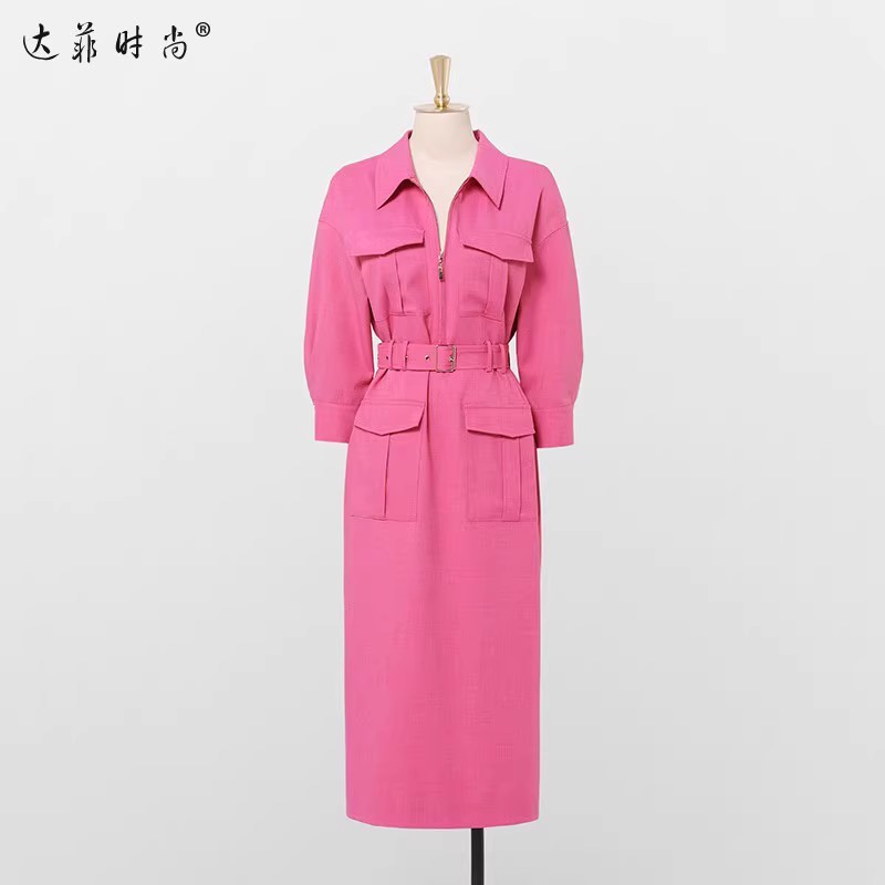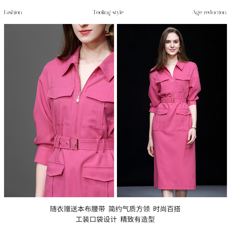 夏季女装2025新款气质复古玫红色收腰显瘦工装风连衣裙长裙女