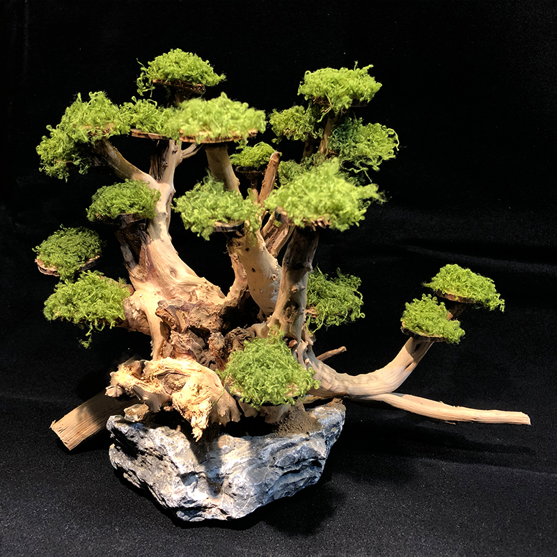 莫斯树造景懒人鱼缸造景鱼缸生命之树水草沉木杜鹃根入缸一木成景
