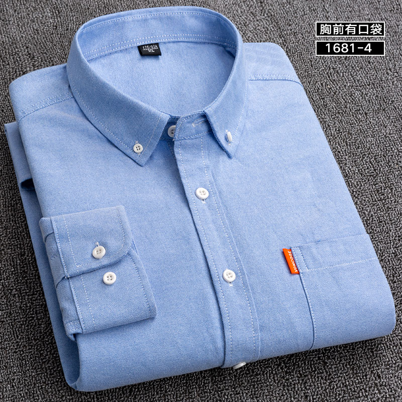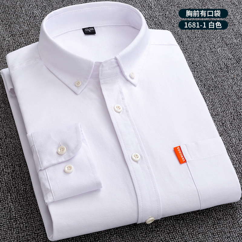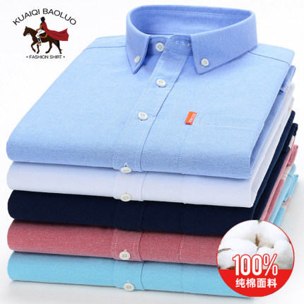 保罗春秋男士纯棉衬衫长袖中青年休闲全棉牛津纺纯色衬衣大码男装