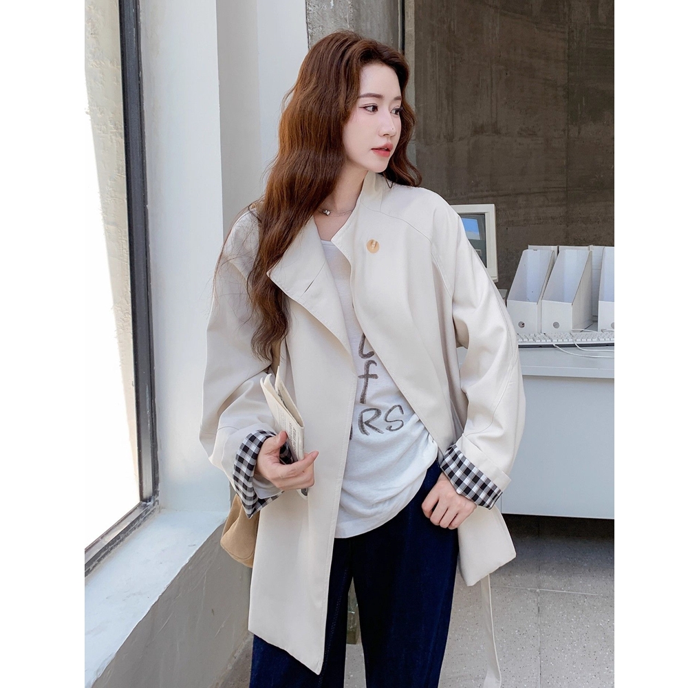 风衣外套短裙女小个子春秋冬气质收腰显瘦斗篷格纹中长款大衣洋气