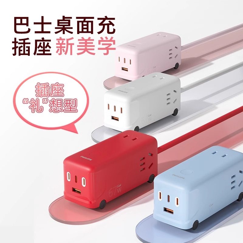 飞利浦多功能插线板usb桌面快充插座67W氮化镓巴士排插35W一转多