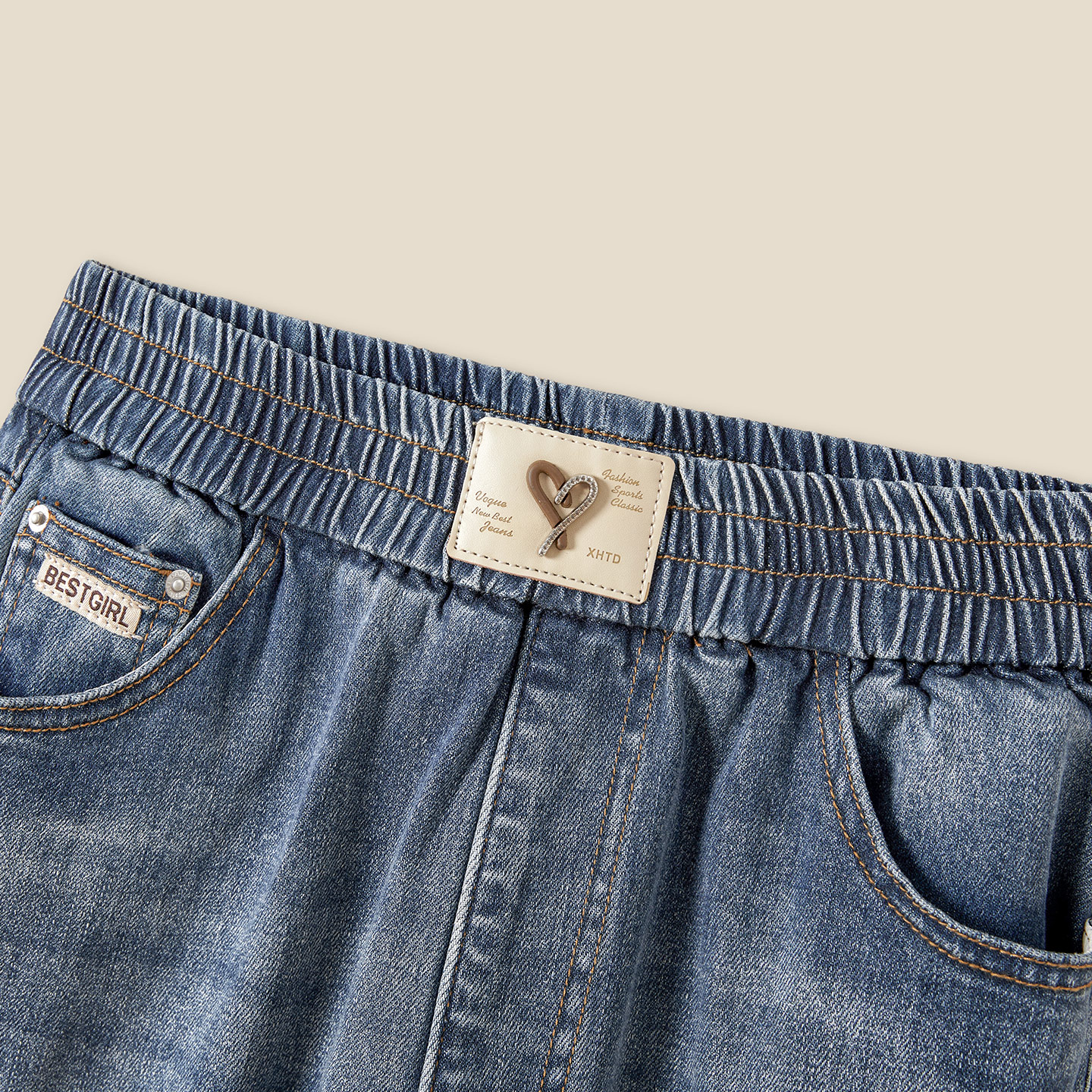 她池松紧腰牛仔裤2025秋装新款女装港风水洗做旧长款显瘦直筒裤